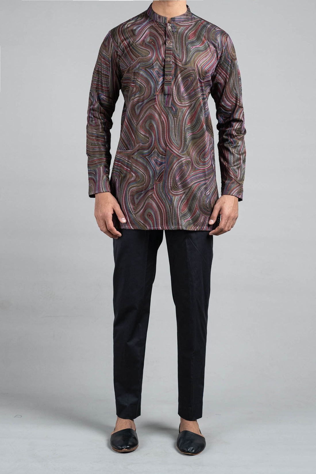 The Kurta-Trouser Suitshorter Kurta, cut above the knee, paired with the Straight-leg Trouser. This signature...