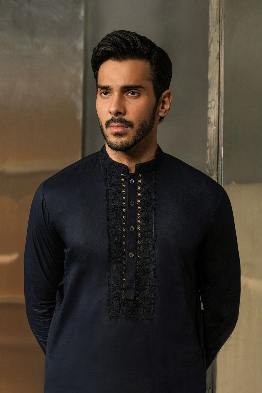 The Embroidered Kurta classic Kurta silhouette, cut from the finest Cotton; fully embroidered with signature...