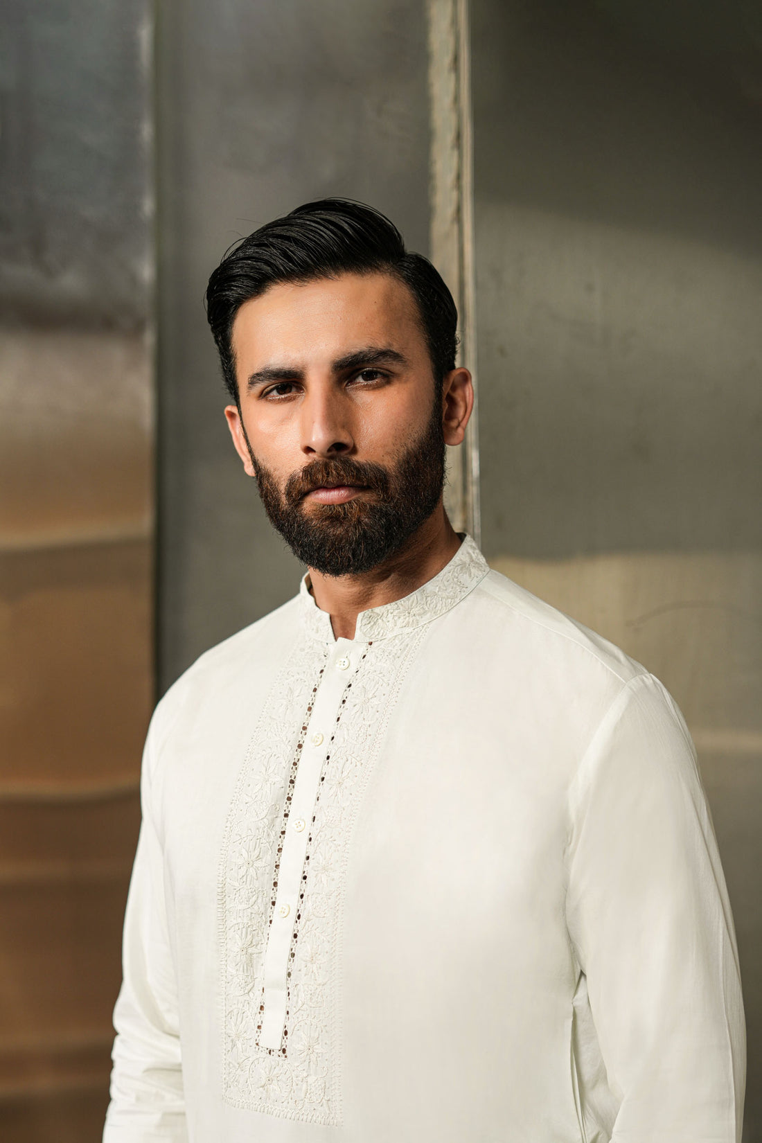 The Embroidered Kurtaclassic Kurta silhouette, cut from the finest Cotton; Fully embroidered with signature patterns...