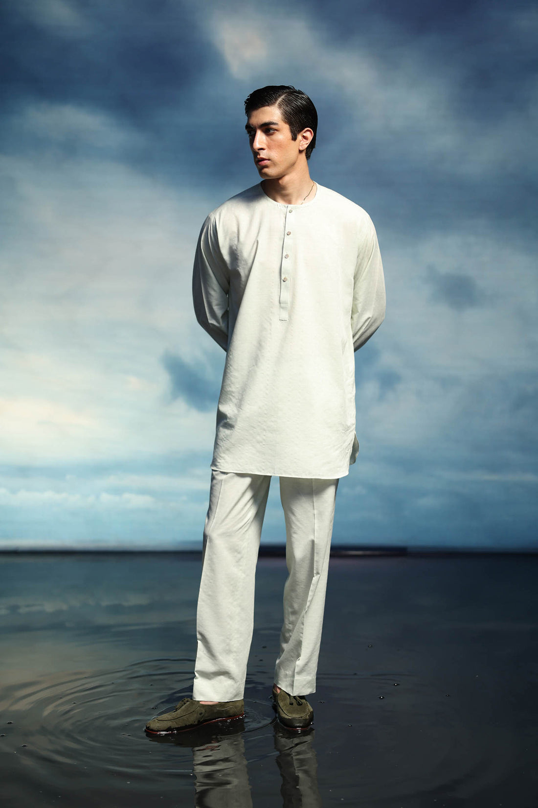 The Jacquard Kurta-Trouser Suit Long Kurta, paired with the Straight-leg trouser. This signature Kurta Trouser...