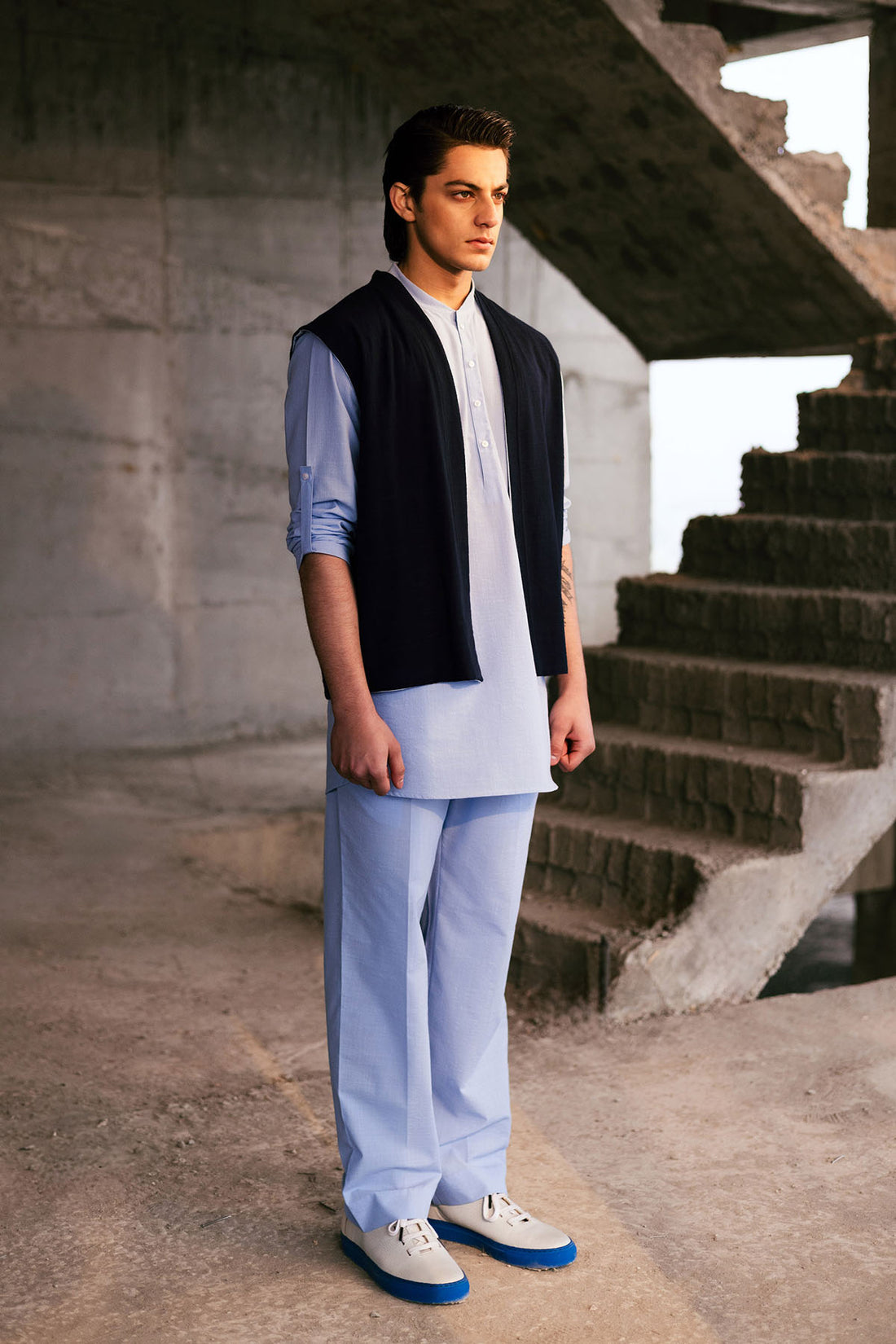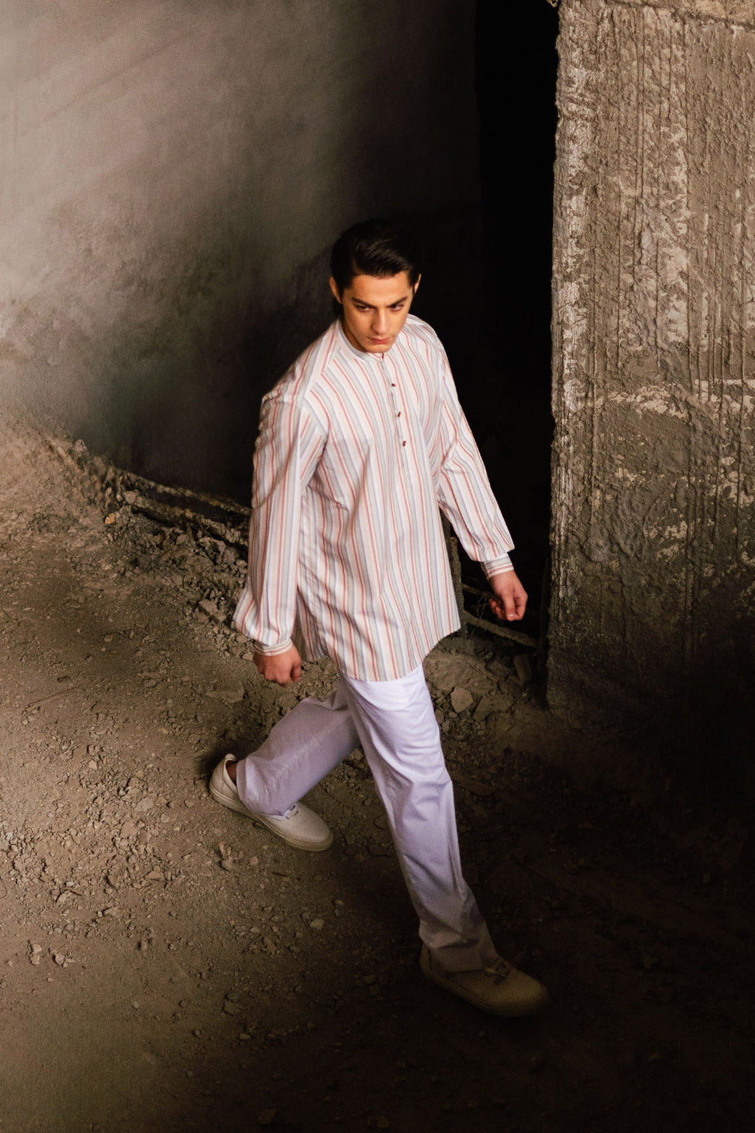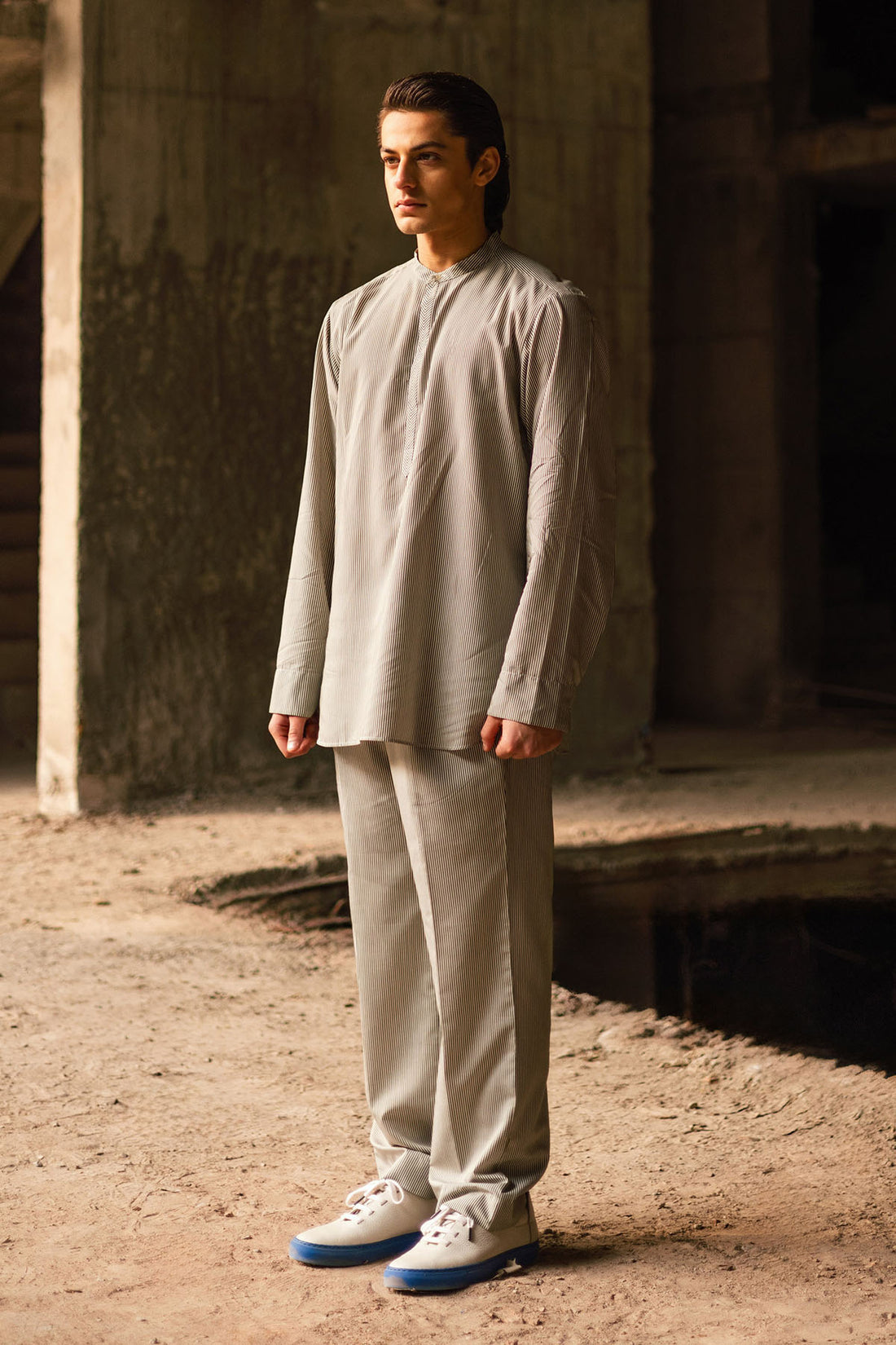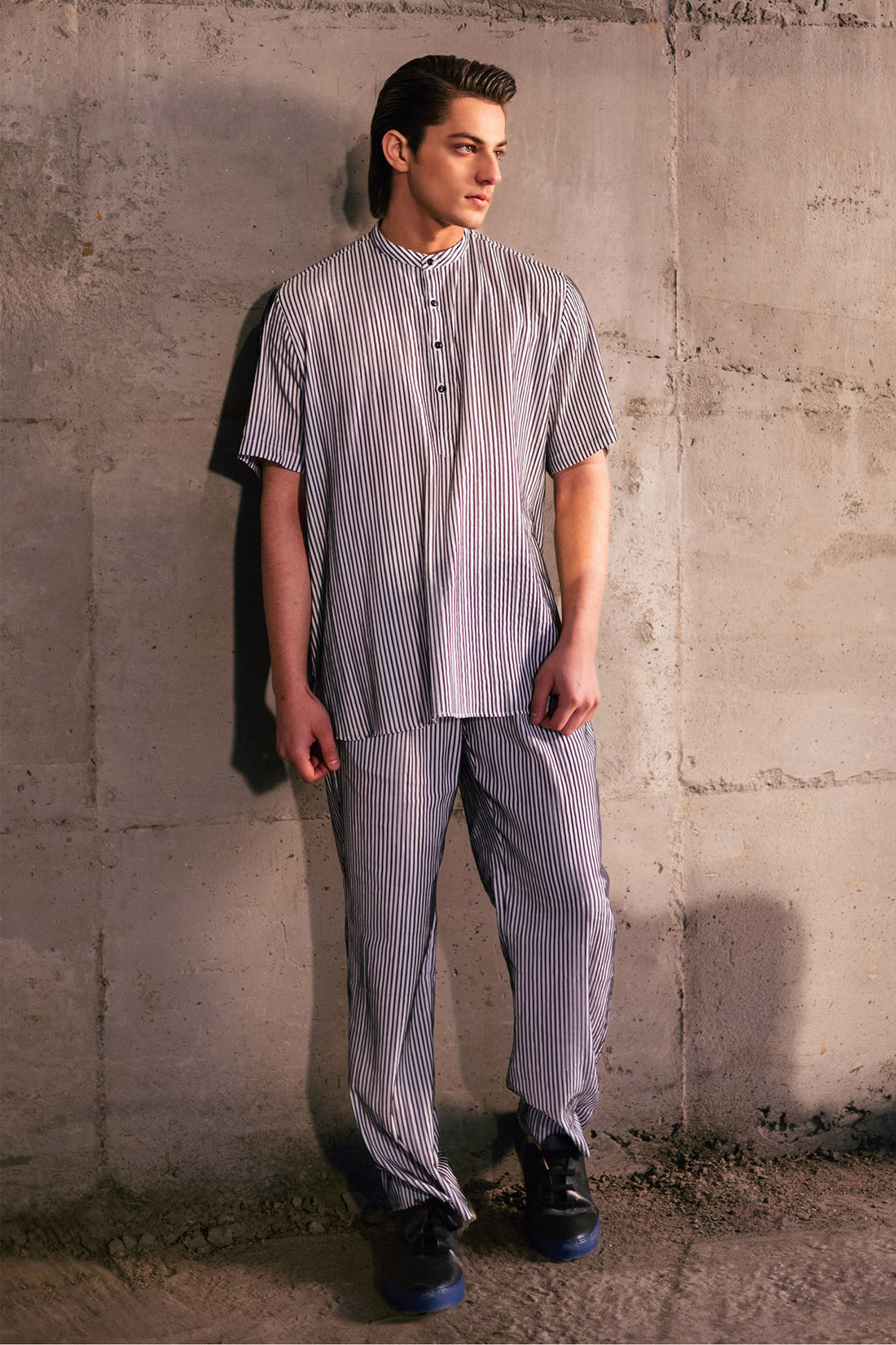 Elevate your style with this contemporary take on eastern wear. Crafted from a breathable striped...