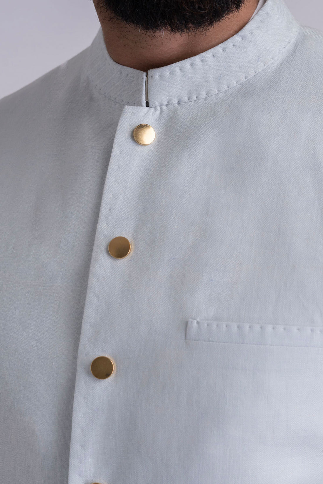 Premium Cotton Waistcoat- A special piece for a special occasion.- Round hem-Single-Tone Buttons-Visible Placket-Patch Pockets-Mandarin...