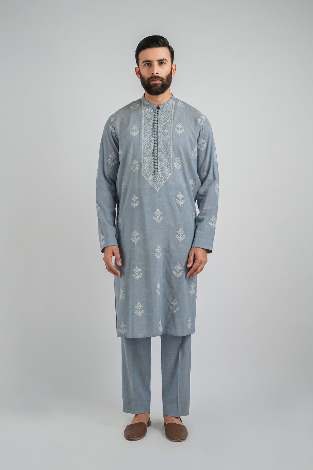 EMBROIDERED-KURTA-TROUSER-SKY-BLUE
