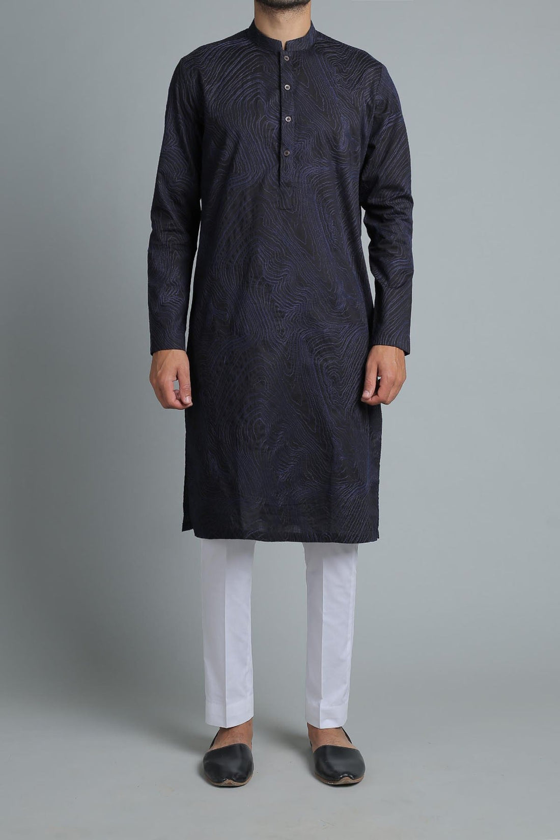 The Embroidered Kurtaclassic Kurta silhouette, cut from the finest Egyptian Cotton; Spray embroidered with signature...