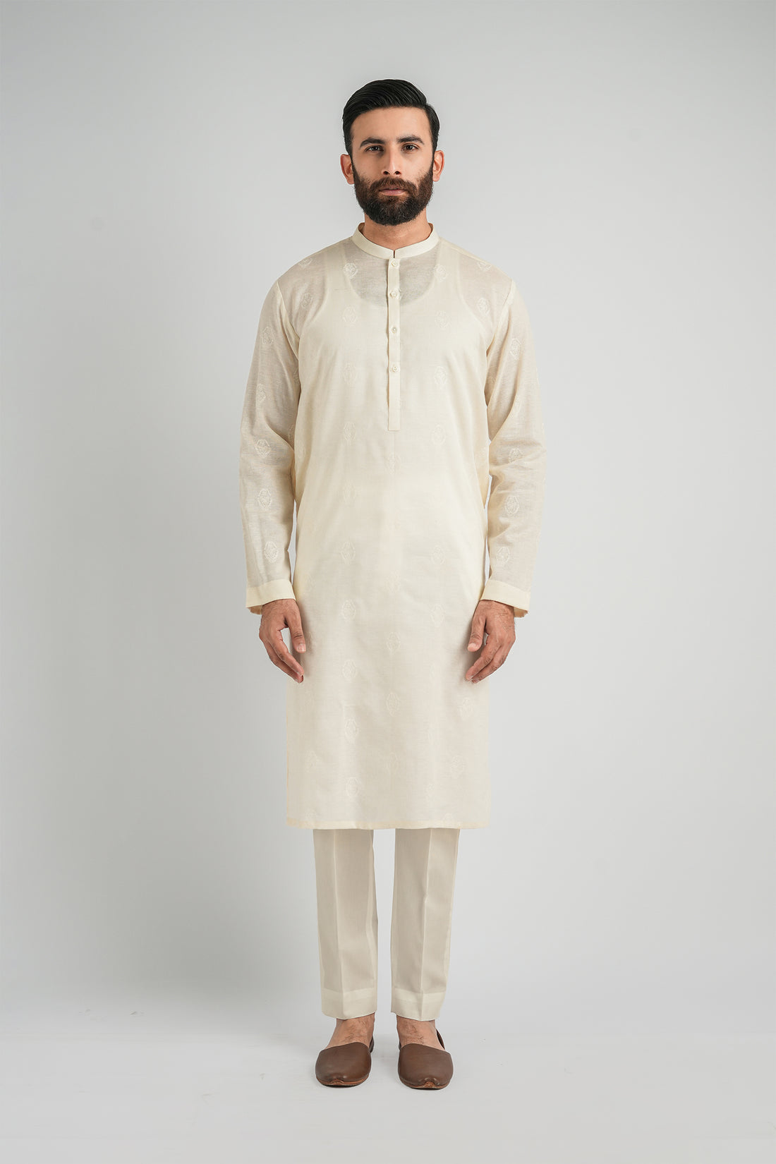 EMBROIDERED-KURTA-TROUSER-IVORY KURTA TROUSER