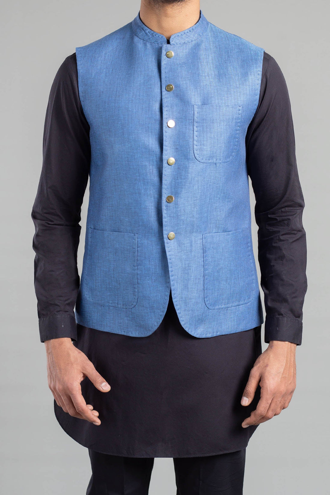 Premium Cotton Waistcoat- A special piece for a special occasion.- Straight hem-Two Toned Buttons-Visible Placket-Welt...