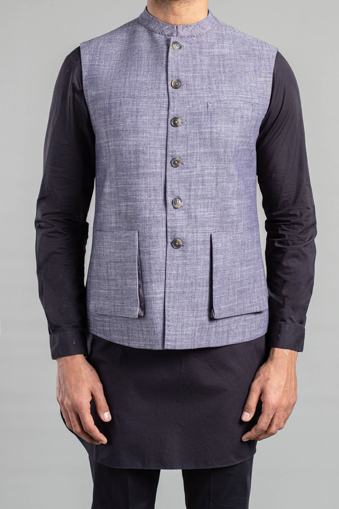Premium Cotton Waistcoat- A special piece for a special occasion.-Round hem-Two Toned Buttons-Visible Placket-Patch Pockets-Mandarin...