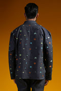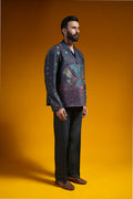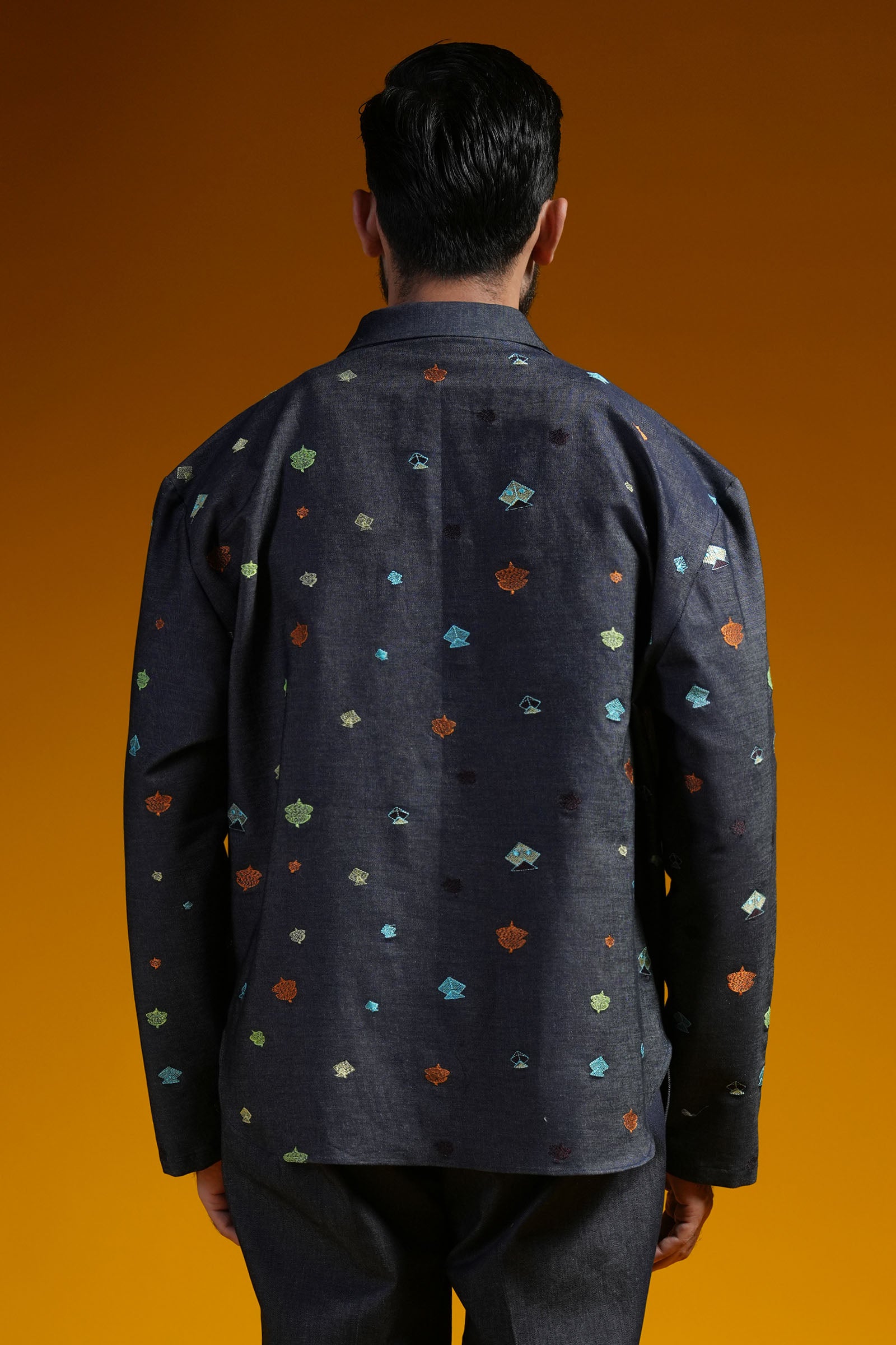Celebrate Basant the modern way with this LAB RECODED co-ord set. Crafted in navy-blue denim, playful multicolour embroidered kites echo Lahore’s colorful skies. The Cuban collar and kurta sleeves add a fresh contemporary touch, while the loose-fit denim pants keep the look relaxed and comfortable—perfect for long Basant afternoons and festive moments.