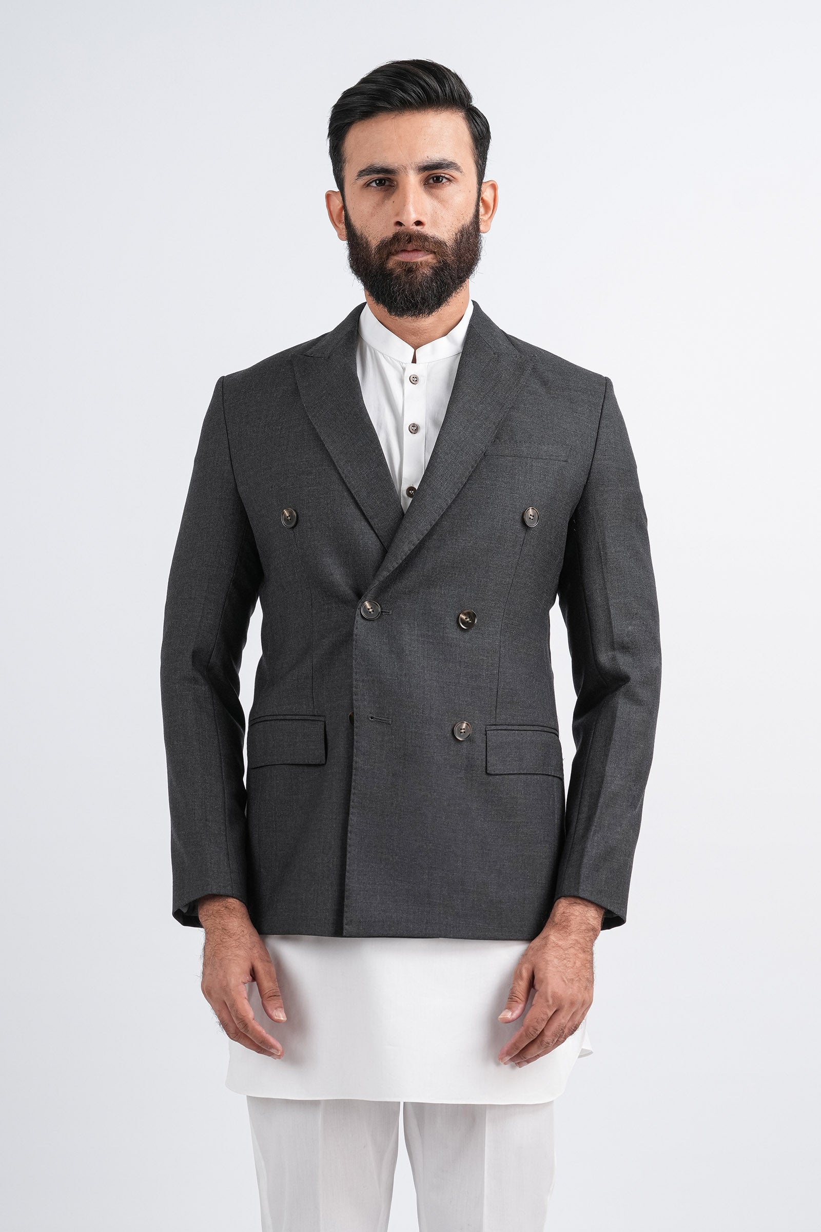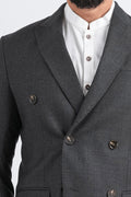 Crafted from premium imported fabric, this double-breasted blazer delivers a sophisticated, elevated look suitable for both daytime events and evening occasions. Its refined structure, complemented by a sharp notch lapel, flap pockets, and a clean straight hem, makes it a timeless wardrobe essential for polished styling.