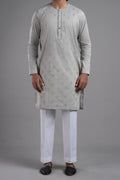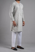 classic Kurta silhouette, cut from the finest Egyptian Cotton; Spray embroidered with signature patterns and designs. A versatile piece which is a style-statement in its own right.