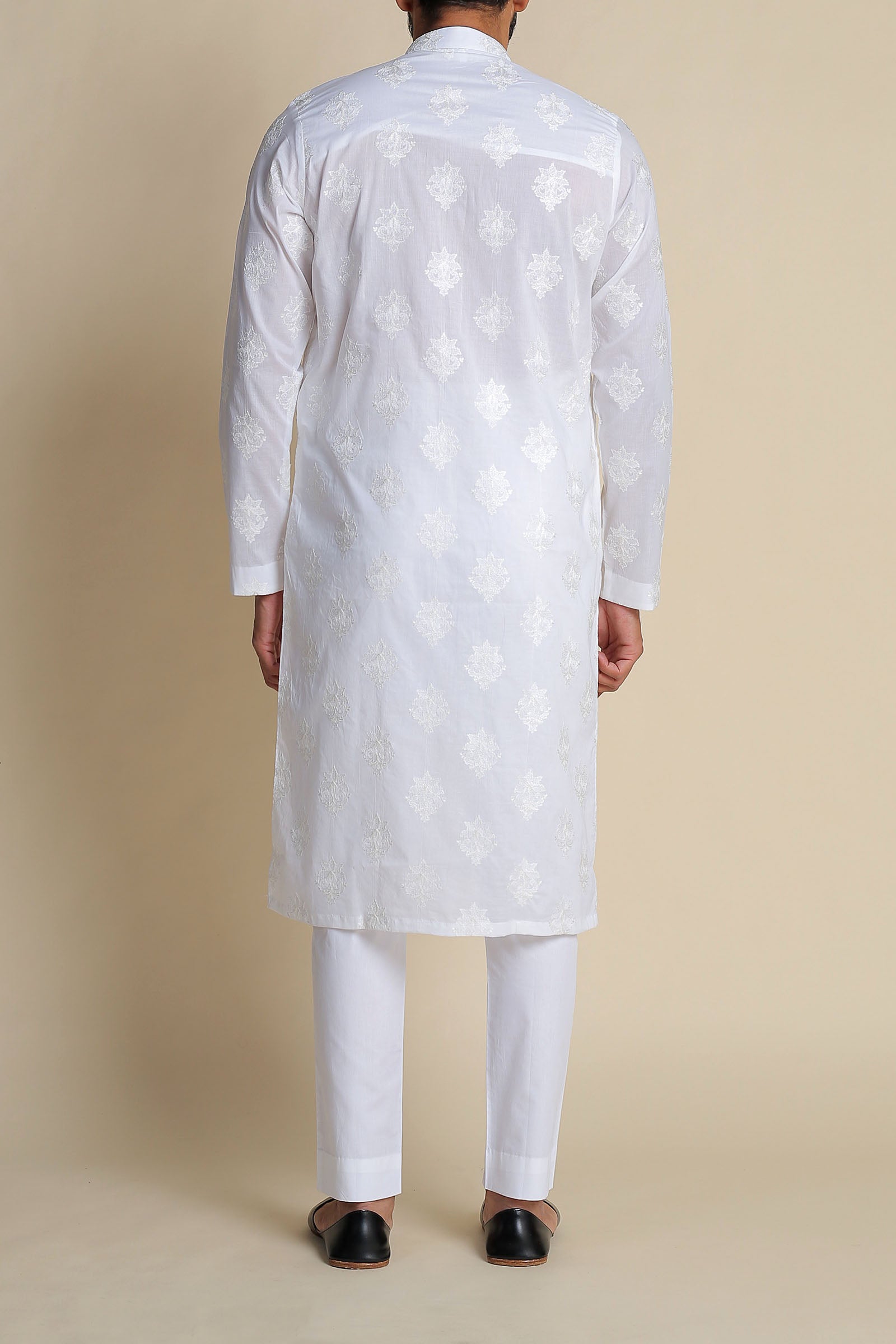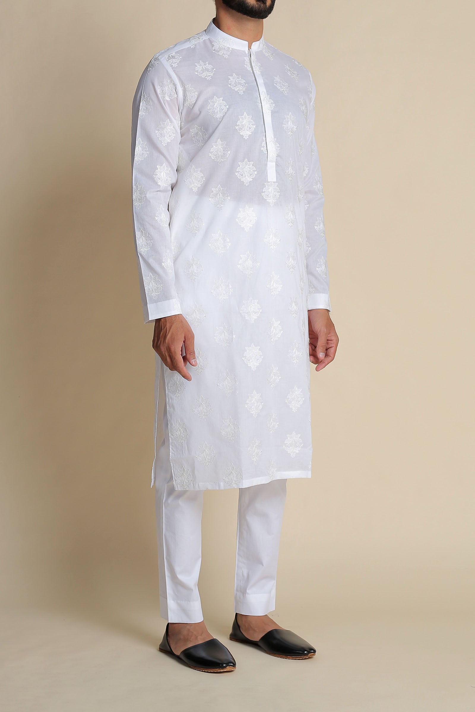 Designed in a timeless classic silhouette, this kurta is crafted from 100% cotton and enriched with delicate all-over embroidery. Soft, breathable, and elegantly detailed, it offers effortless style and comfort—making it a versatile piece that stands out on its own.