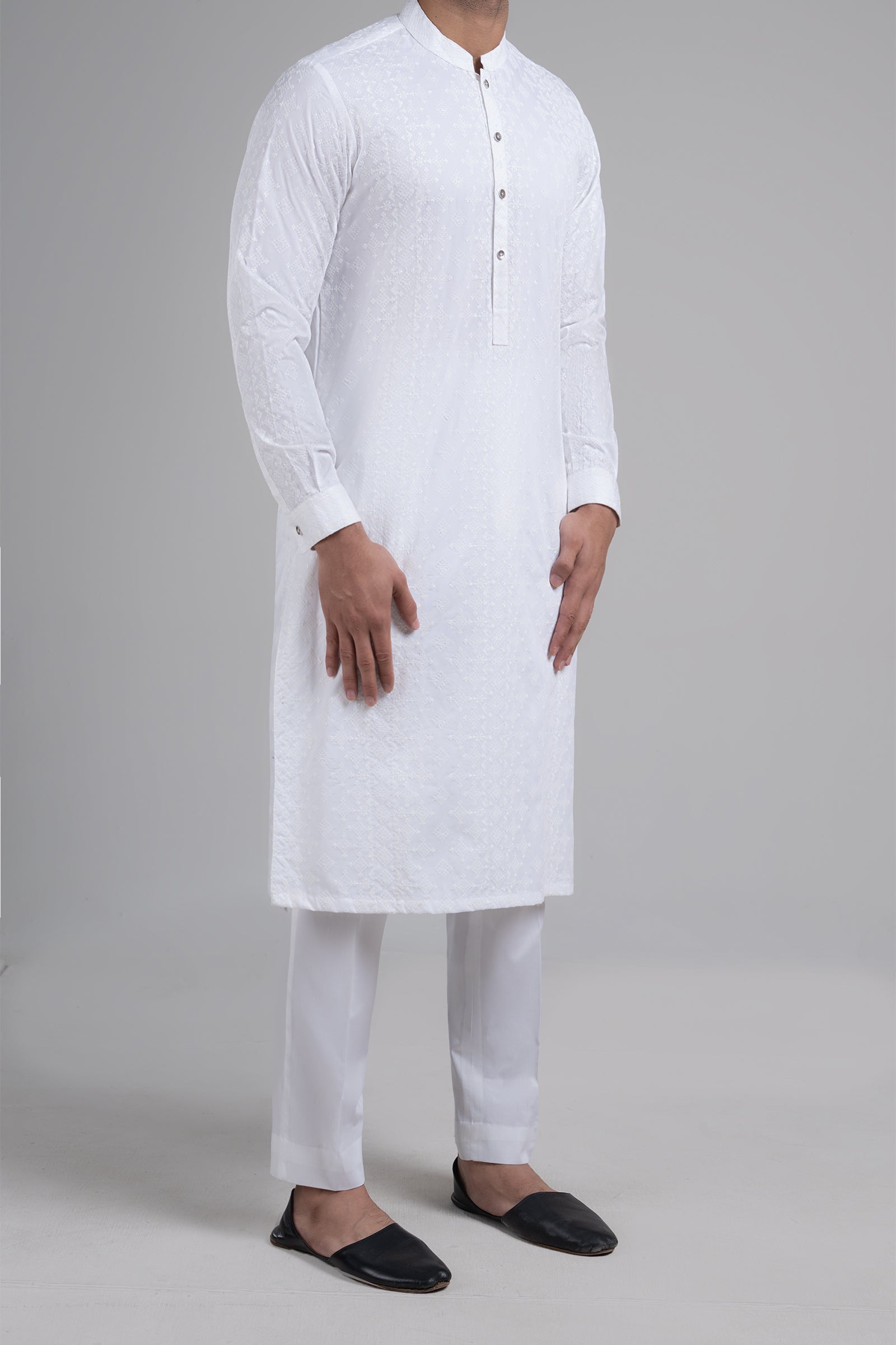 classic Kurta silhouette, cut from the finest Egyptian Cotton; fully embroidered with signature patterns and designs. A versatile piece which is a style-statement in its own right.