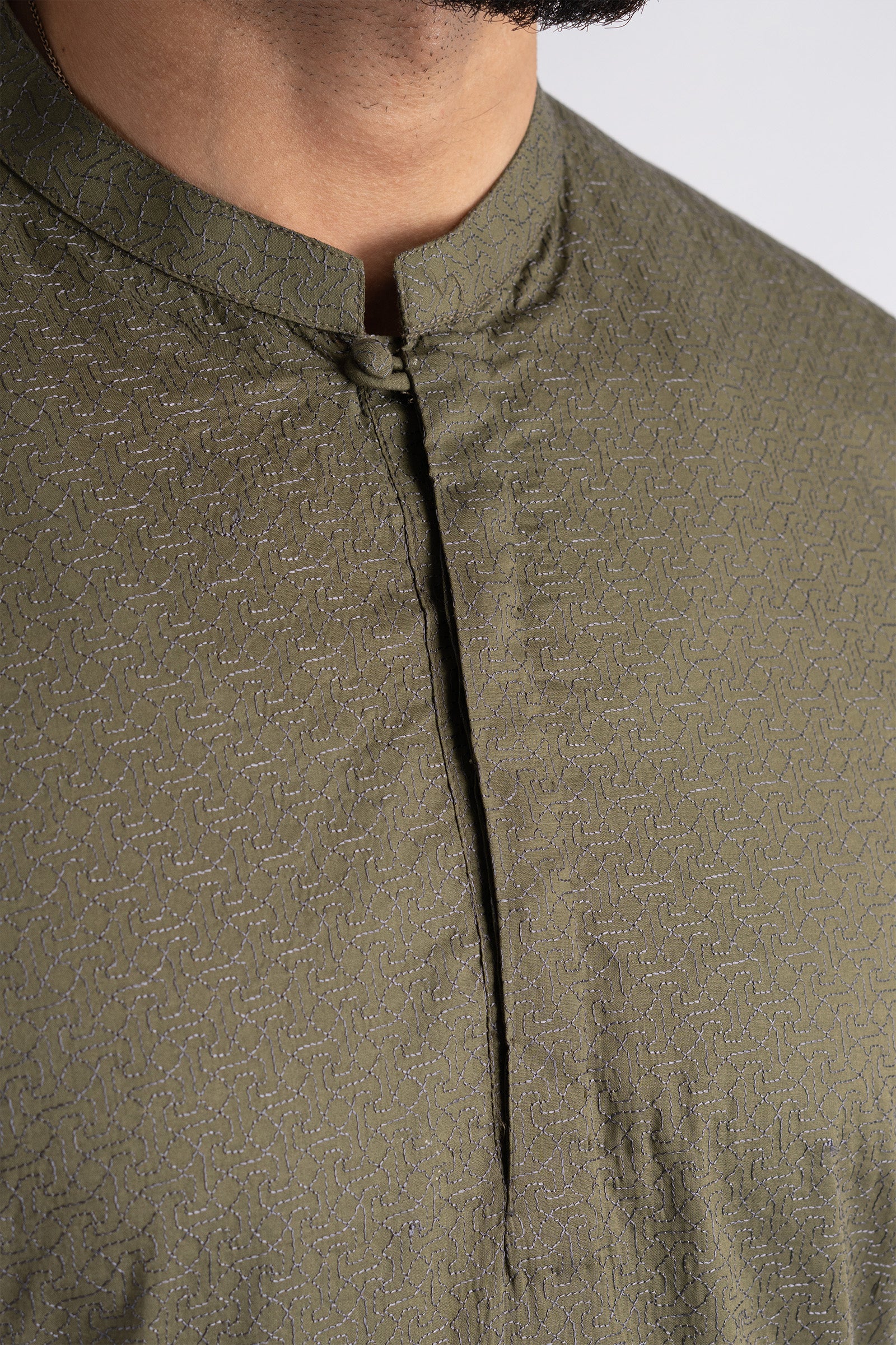 classic Kurta silhouette, cut from the finest Cotton; Fully embroidered with signature patterns and designs. A versatile piece which is a style-statement in its own right.