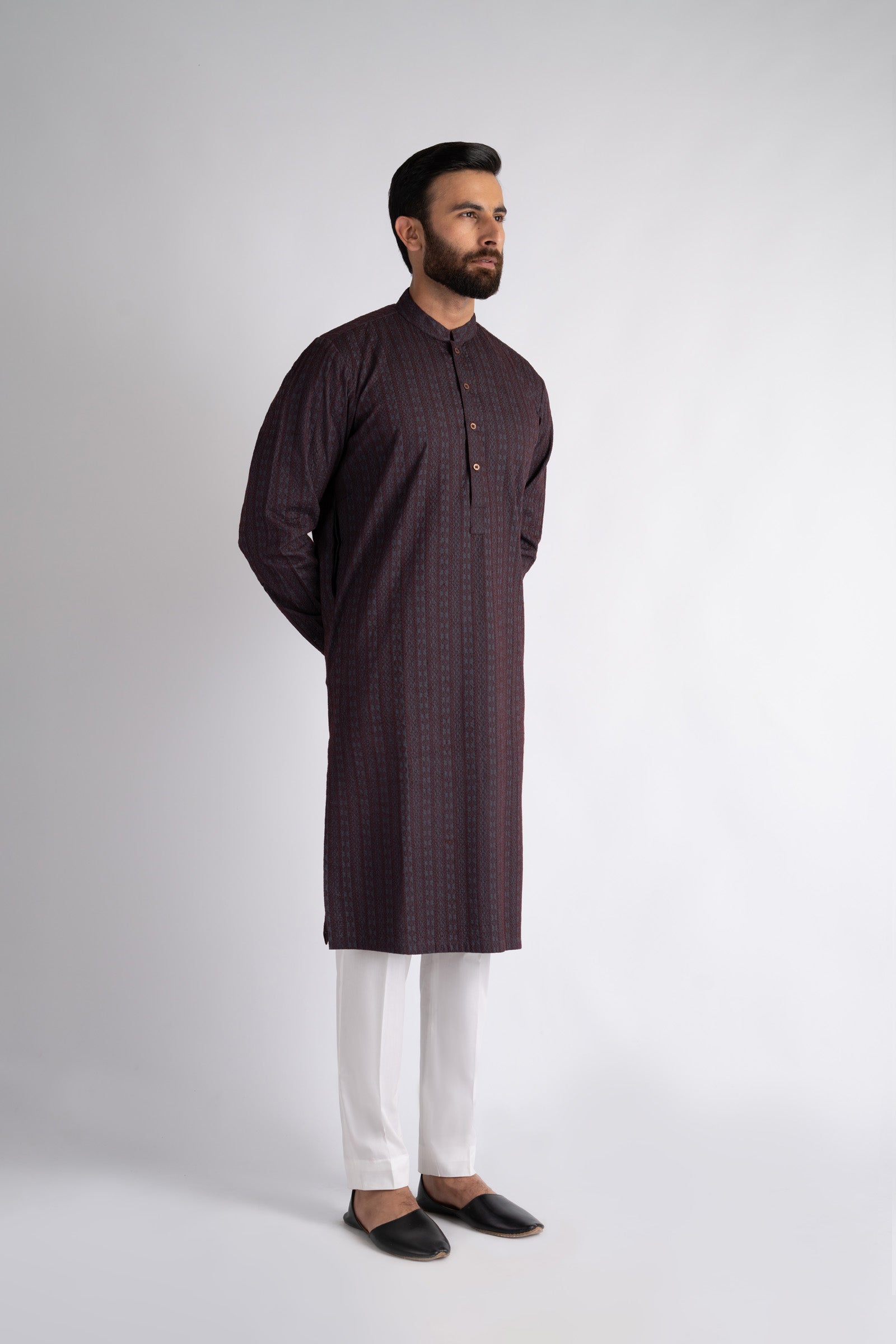 classic Kurta silhouette, cut from the finest Cotton; Fully embroidered with signature patterns and designs. A versatile piece which is a style-statement in its own right.