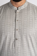 classic Kurta silhouette, cut from the finest Cotton; Fully embroidered with signature patterns and designs. A versatile piece which is a style-statement in its own right.