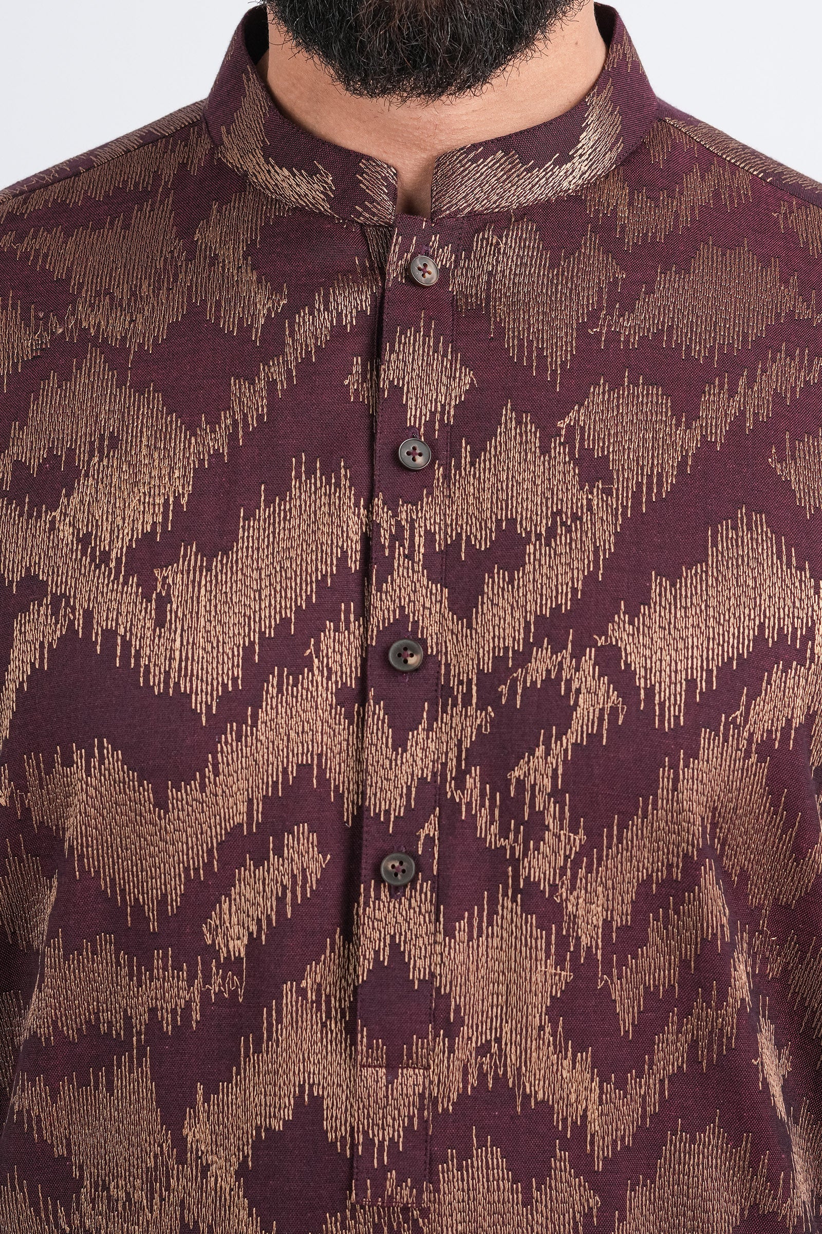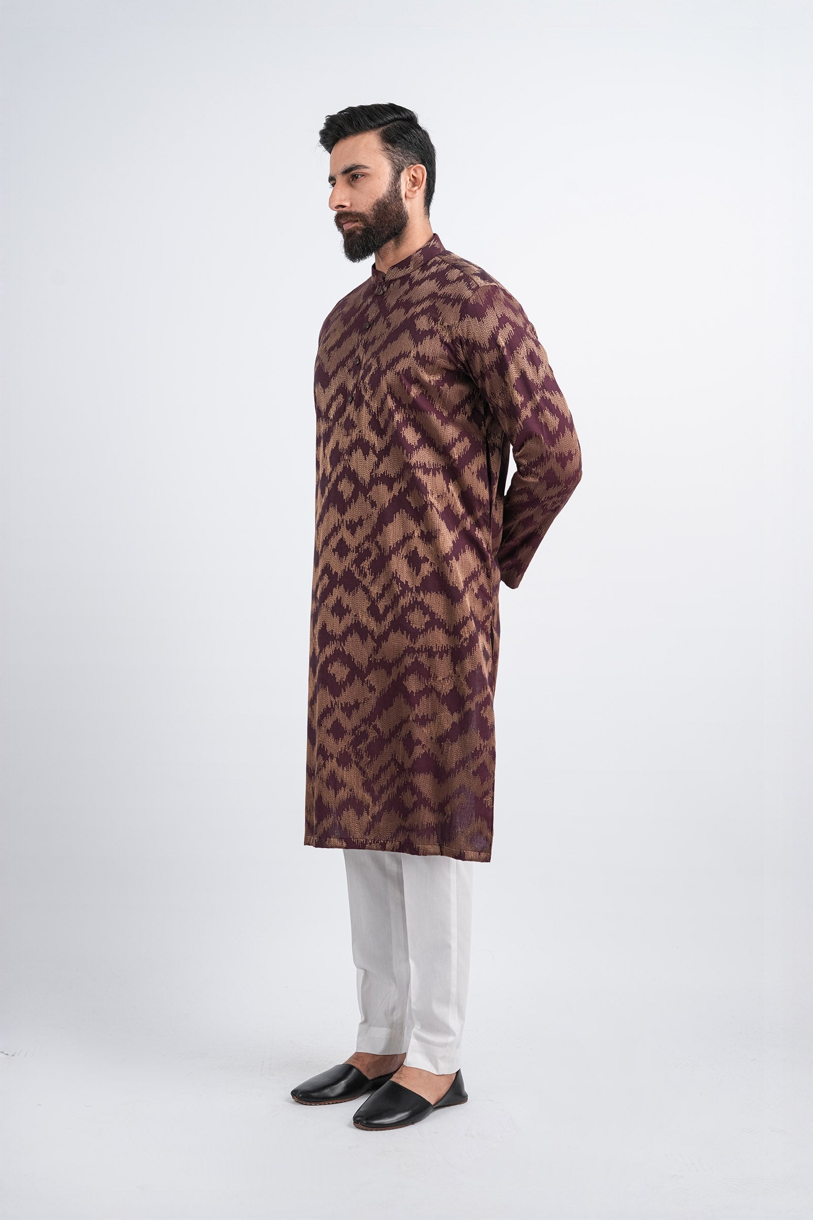 Crafted in a timeless kurta silhouette, this piece is tailored from premium Handloom fabric and beautifully adorned with Ikat-inspired all-over embroidery. Its refined detailing and artisanal texture make it a standout essentialÑeffortlessly versatile and a style statement on its own.
