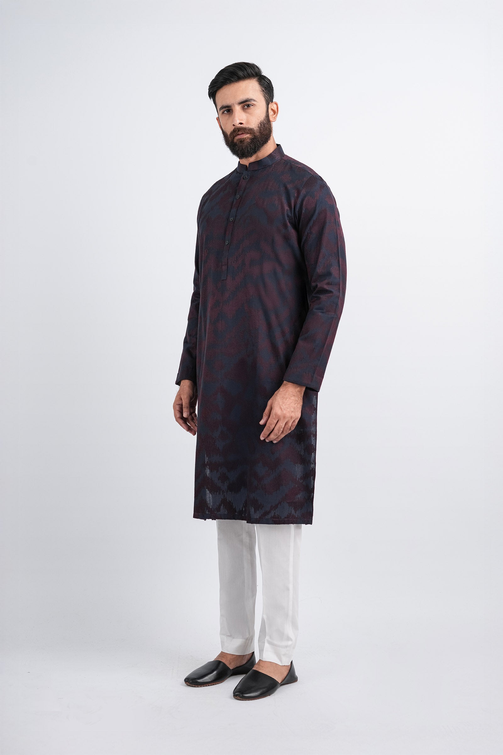 Crafted in a timeless kurta silhouette, this piece is tailored from premium Handloom fabric and beautifully adorned with Ikat-inspired all-over embroidery. Its refined detailing and artisanal texture make it a standout essentialÑeffortlessly versatile and a style statement on its own.