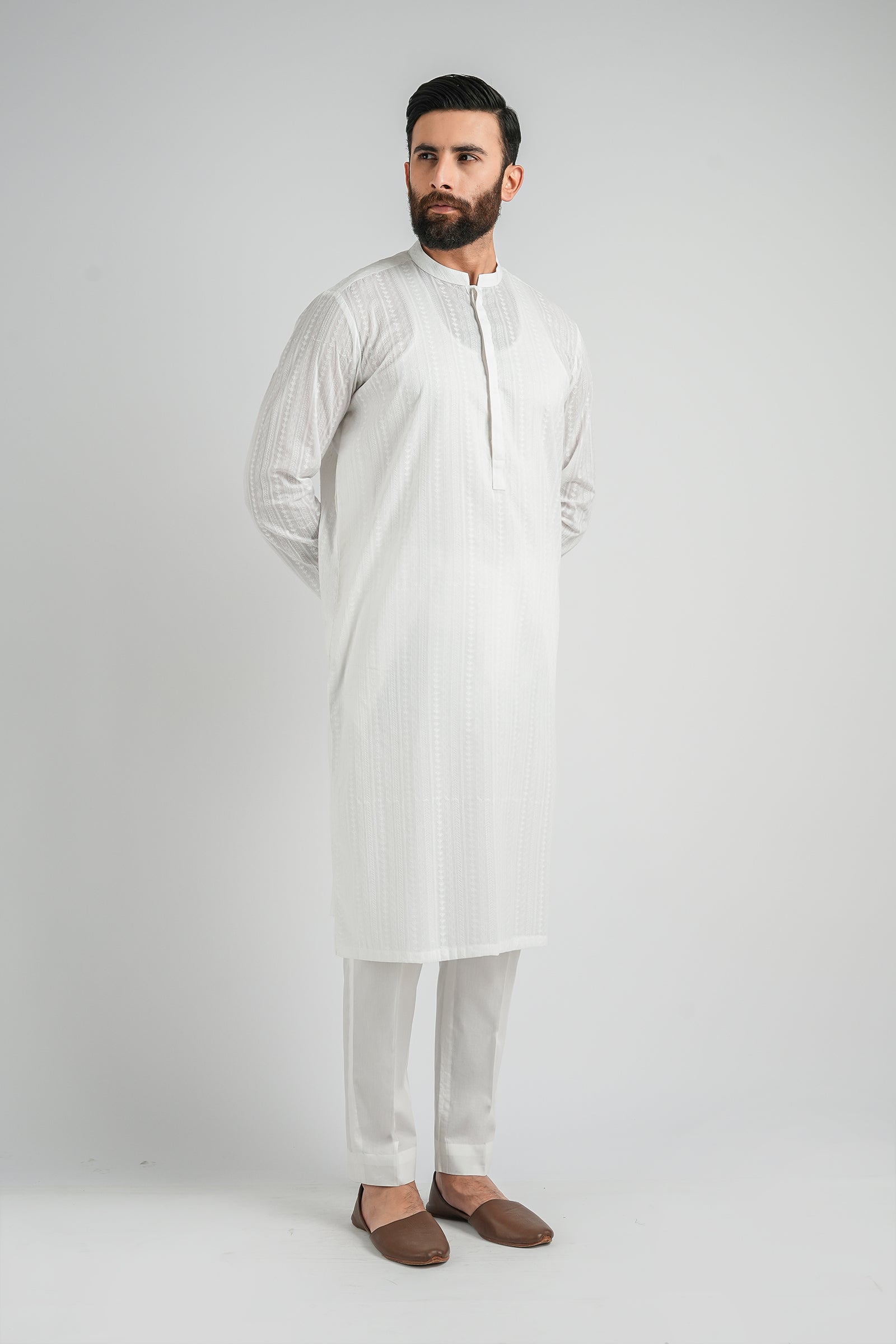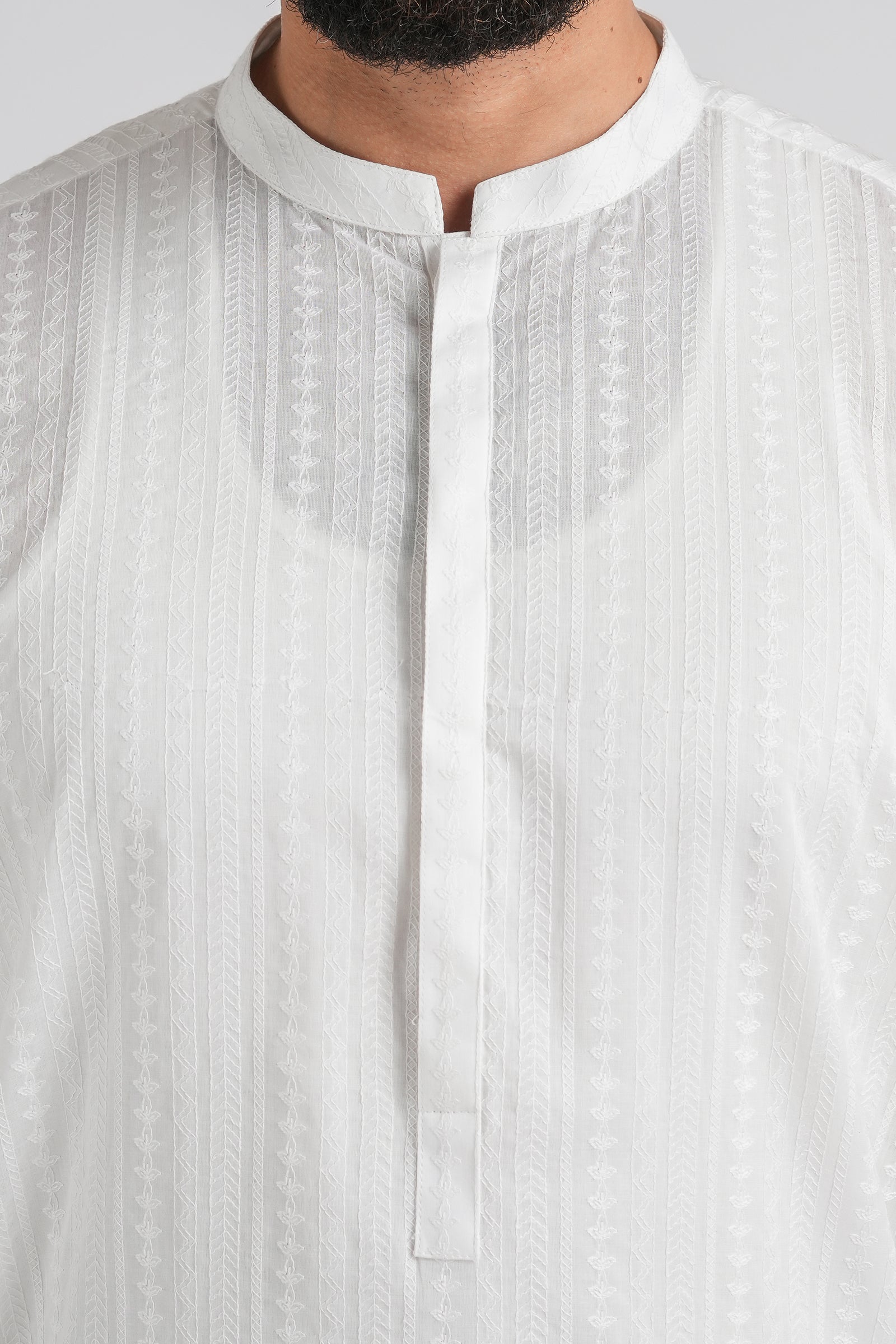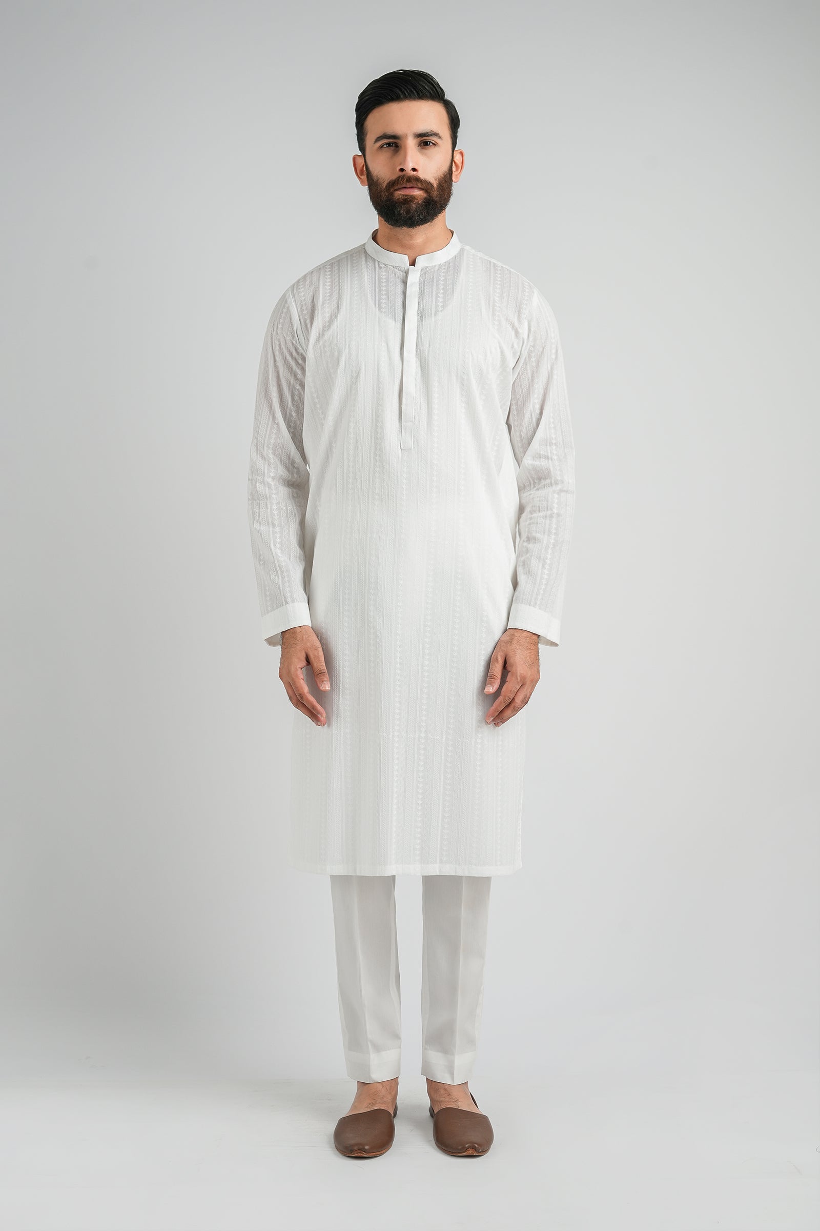A timeless classic, redefined with craftsmanship. This kurta is tailored in a classic silhouette and cut from the finest 100% cotton for breathable comfort and effortless wear. Fully adorned with signature embroidery patterns, it strikes the perfect balance between tradition and modern refinement — making it a statement piece in its own right.