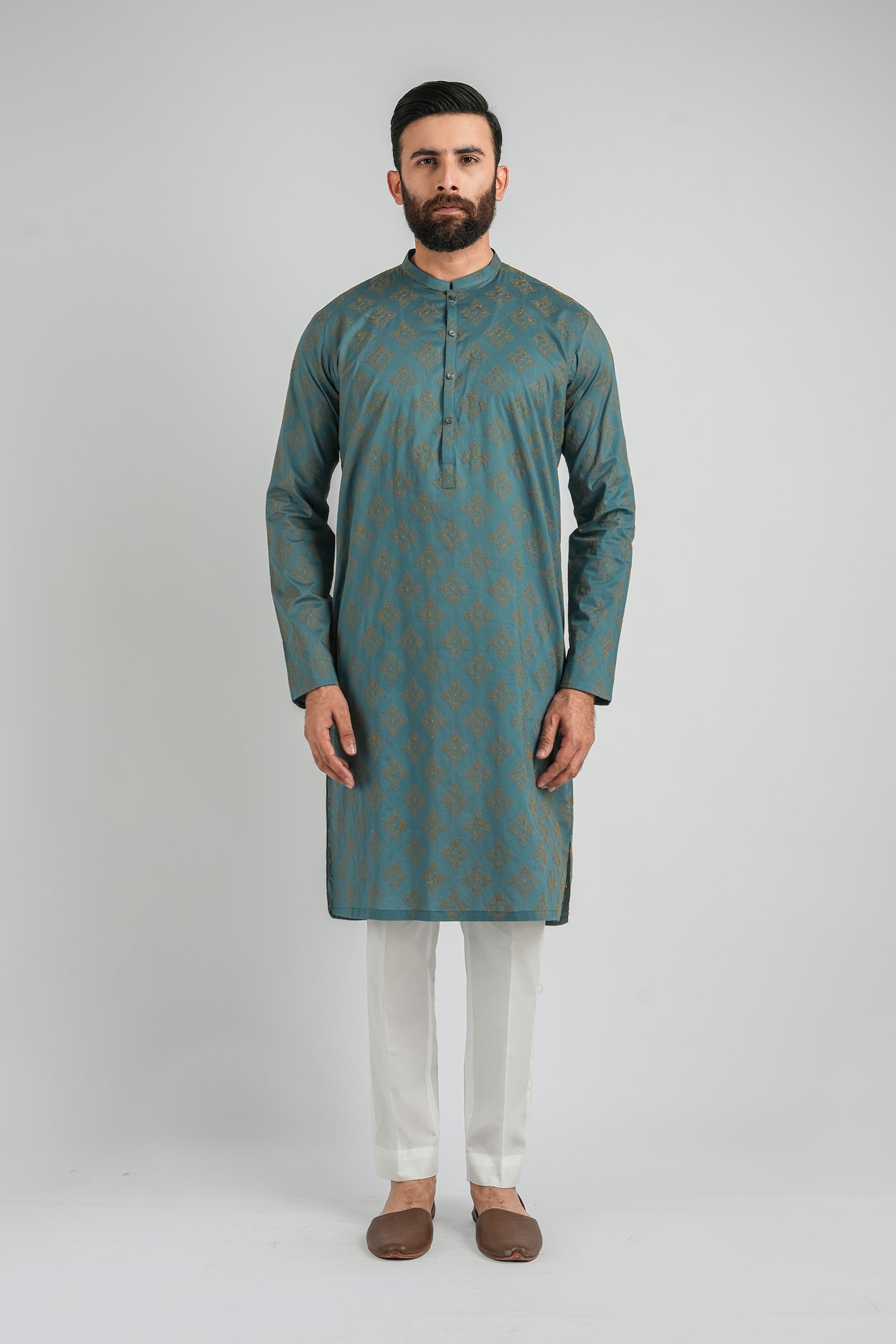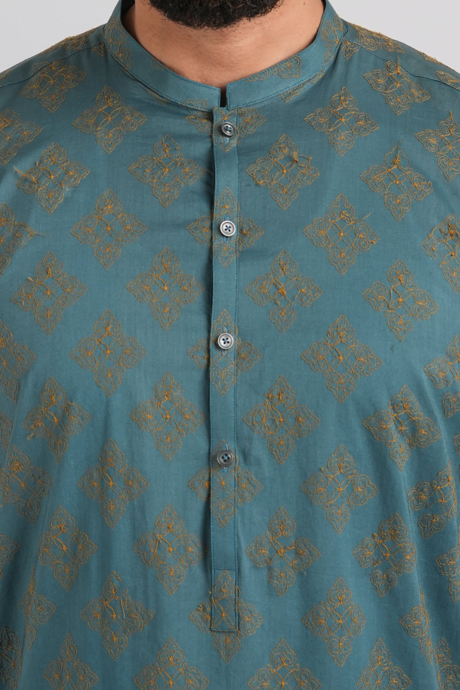 A timeless classic, redefined with craftsmanship. This kurta is tailored in a classic silhouette and cut from the finest 100% cotton for breathable comfort and effortless wear. Fully adorned with signature embroidery patterns, it strikes the perfect balance between tradition and modern refinement — making it a statement piece in its own right.