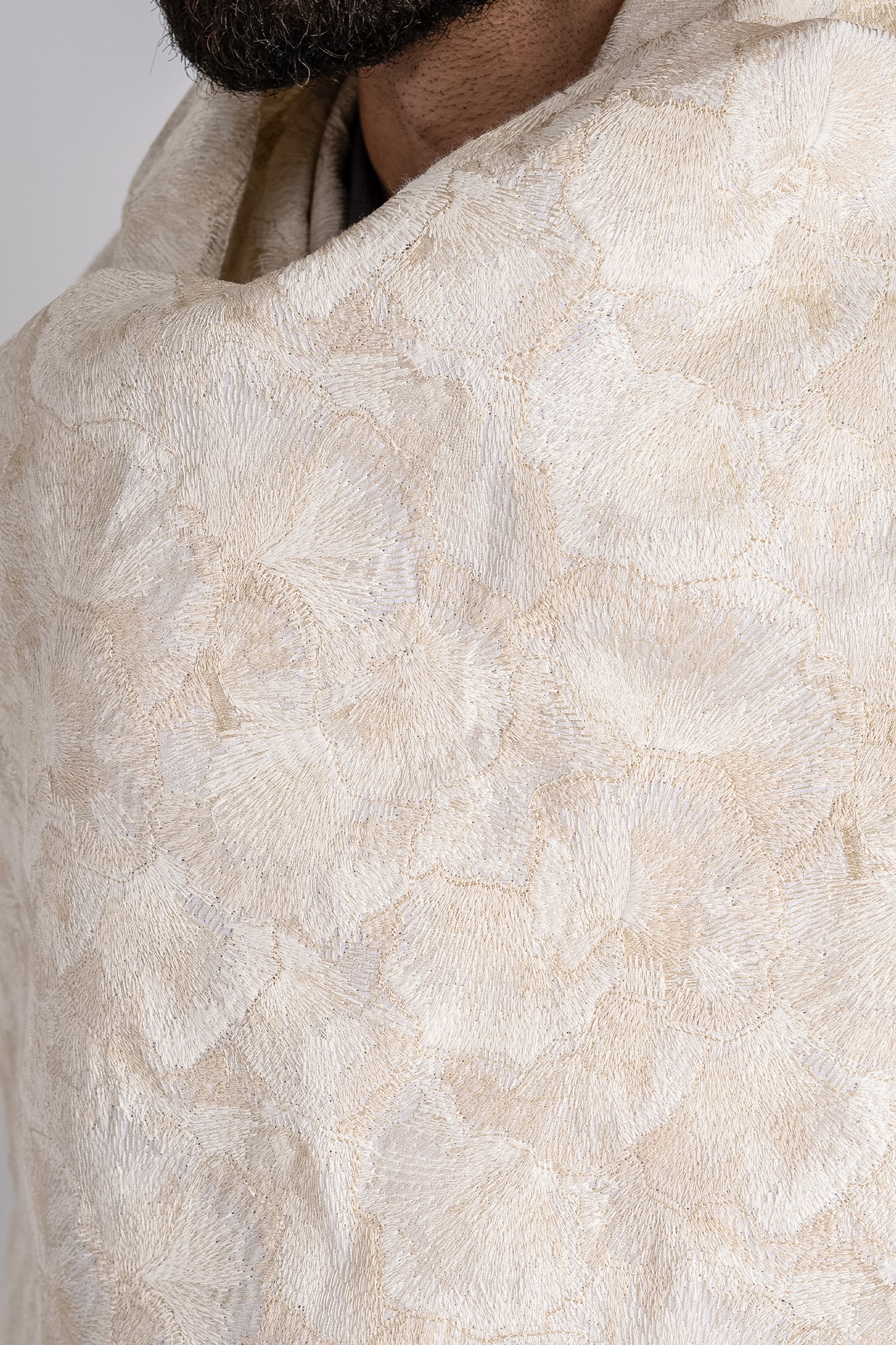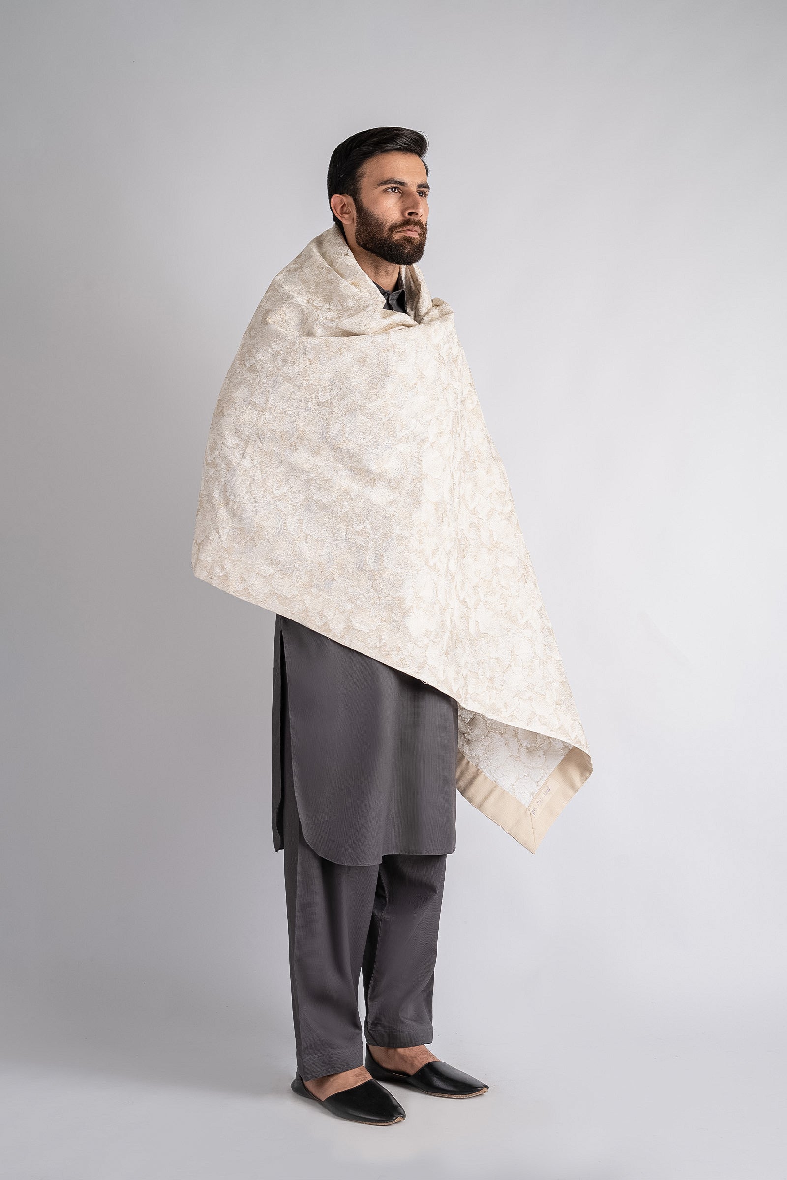 The Bareeze Man Handloomed Embroidered Shawl speaks of the sophisticated work of shawl ateliers of the subcontinent, showcased throughout history in many imperial wardrobes, from the subcontinent to Europe.