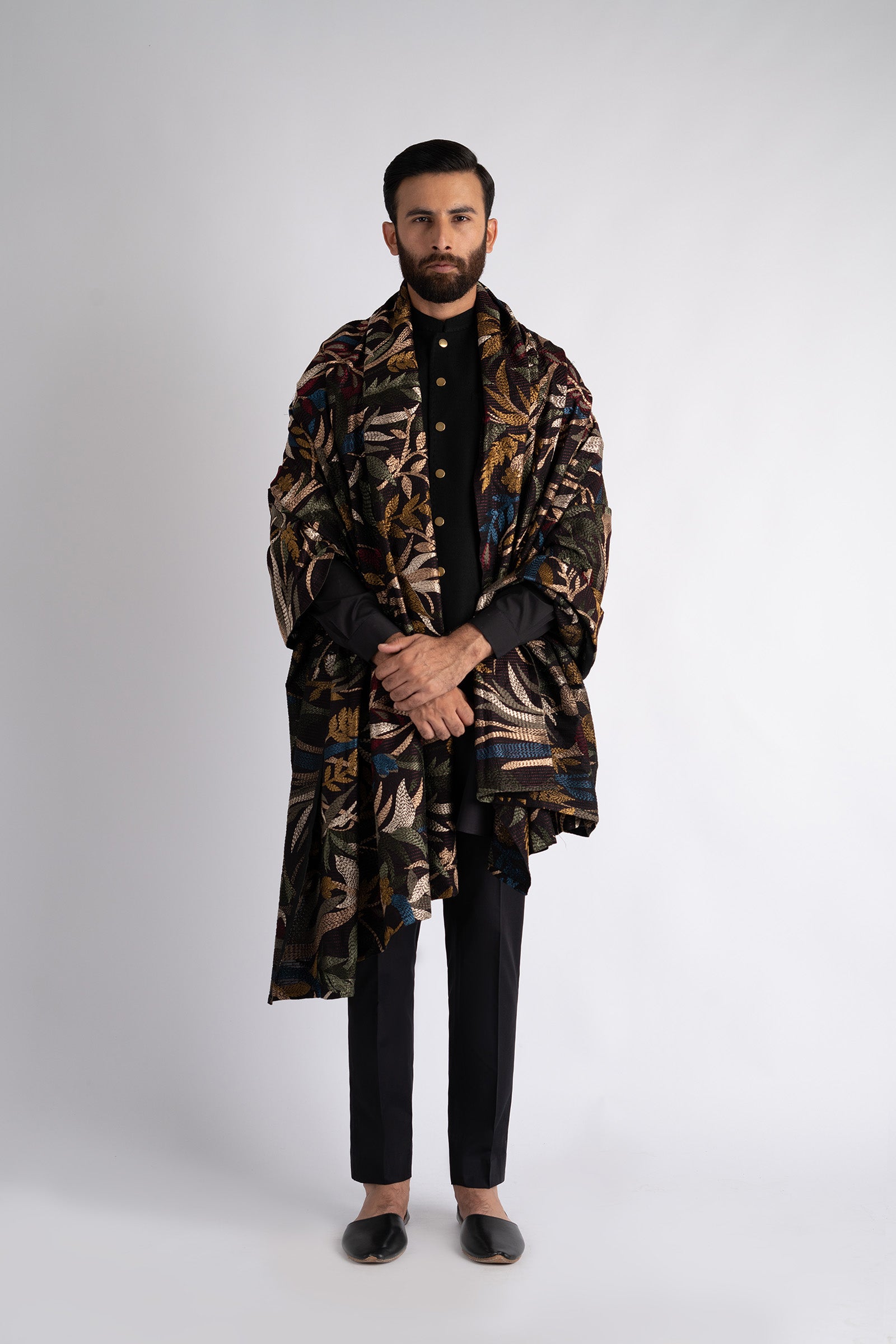 The Bareeze Man Handloomed Embroidered Shawl speaks of the sophisticated work of shawl ateliers of the subcontinent, showcased throughout history in many imperial wardrobes, from the subcontinent to Europe.