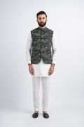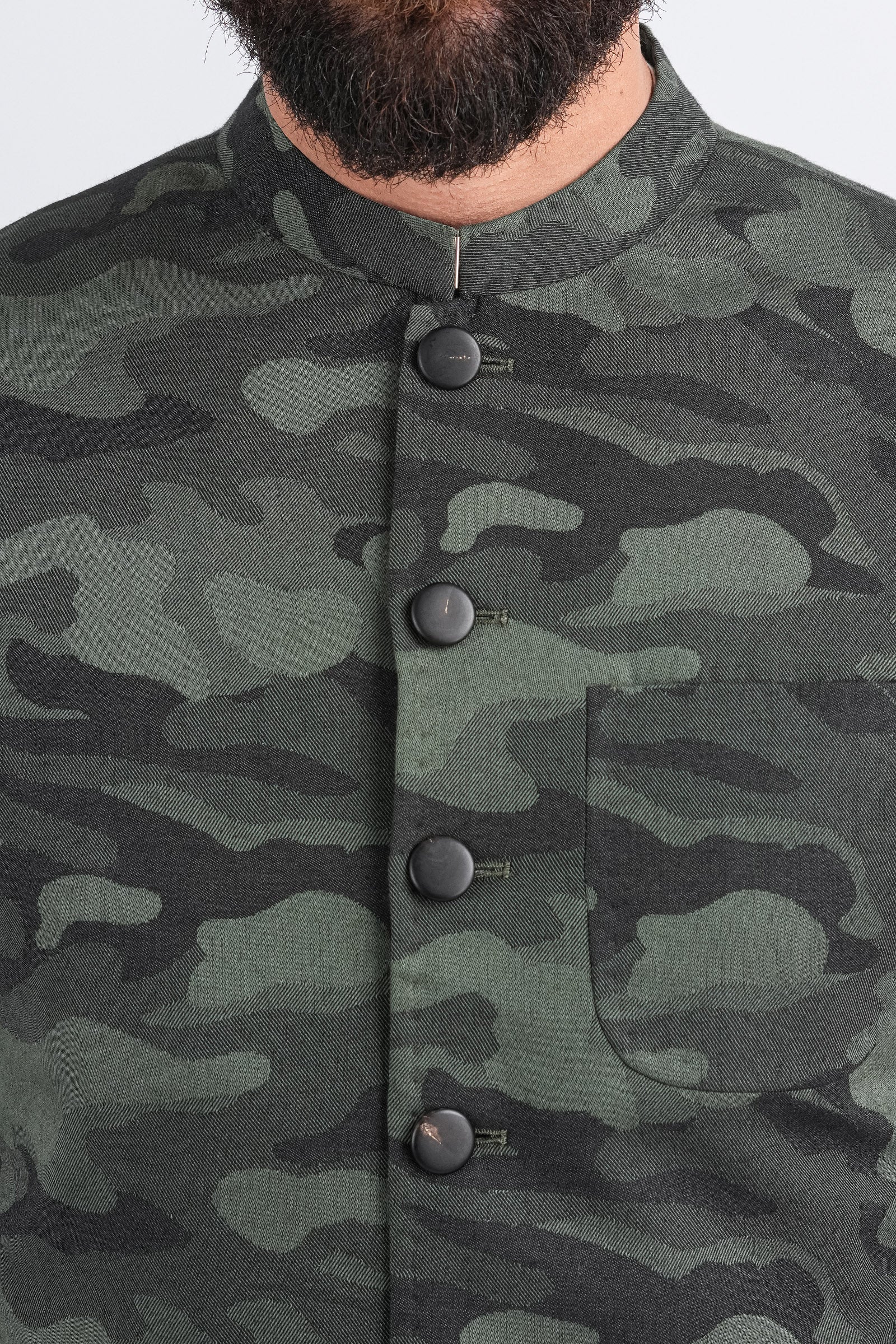 This premium waistcoat is crafted from 100% cotton and features a distinctive camouflage-inspired jacquard weave, blending modern texture with classic tailoring. Designed with a sleek button placket, patch pocket, mandarin collar, and round hem, it adds a refined statement to any traditional ensemble. Perfect for festive gatherings, semi-formal events, or standout seasonal styling.