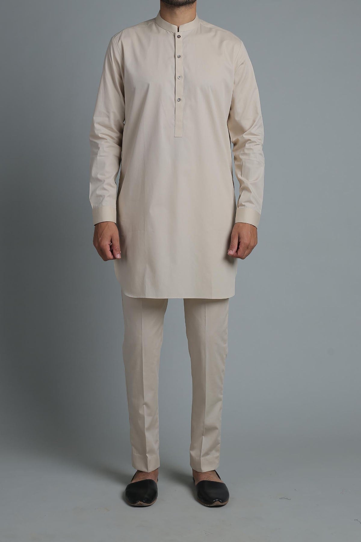shorter Kurta, cut above the knee, paired with the Straight-leg Trouser. This signature Kurta is crafted from 100% fine Egyptian Cotton with a silhouette that is a combination of modern-day panache and classic refinement.
