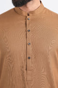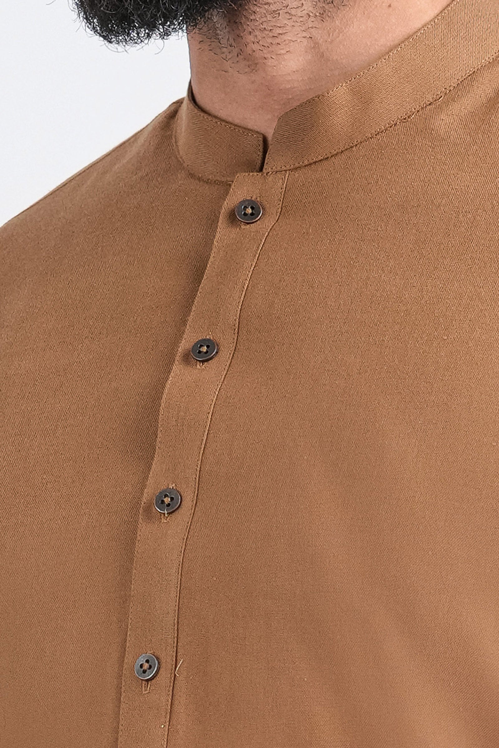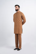 A perfect blend of tradition and contemporary style, this signature kurta-trouser suit is crafted from 100% handloom fabric. The short kurta features a mandarin collar, button placket, cuffed sleeves, and a round hem, paired with straight-leg trousers for a clean, elegant silhouette. Ideal for both everyday wear and special occasions, it exudes effortless sophistication.