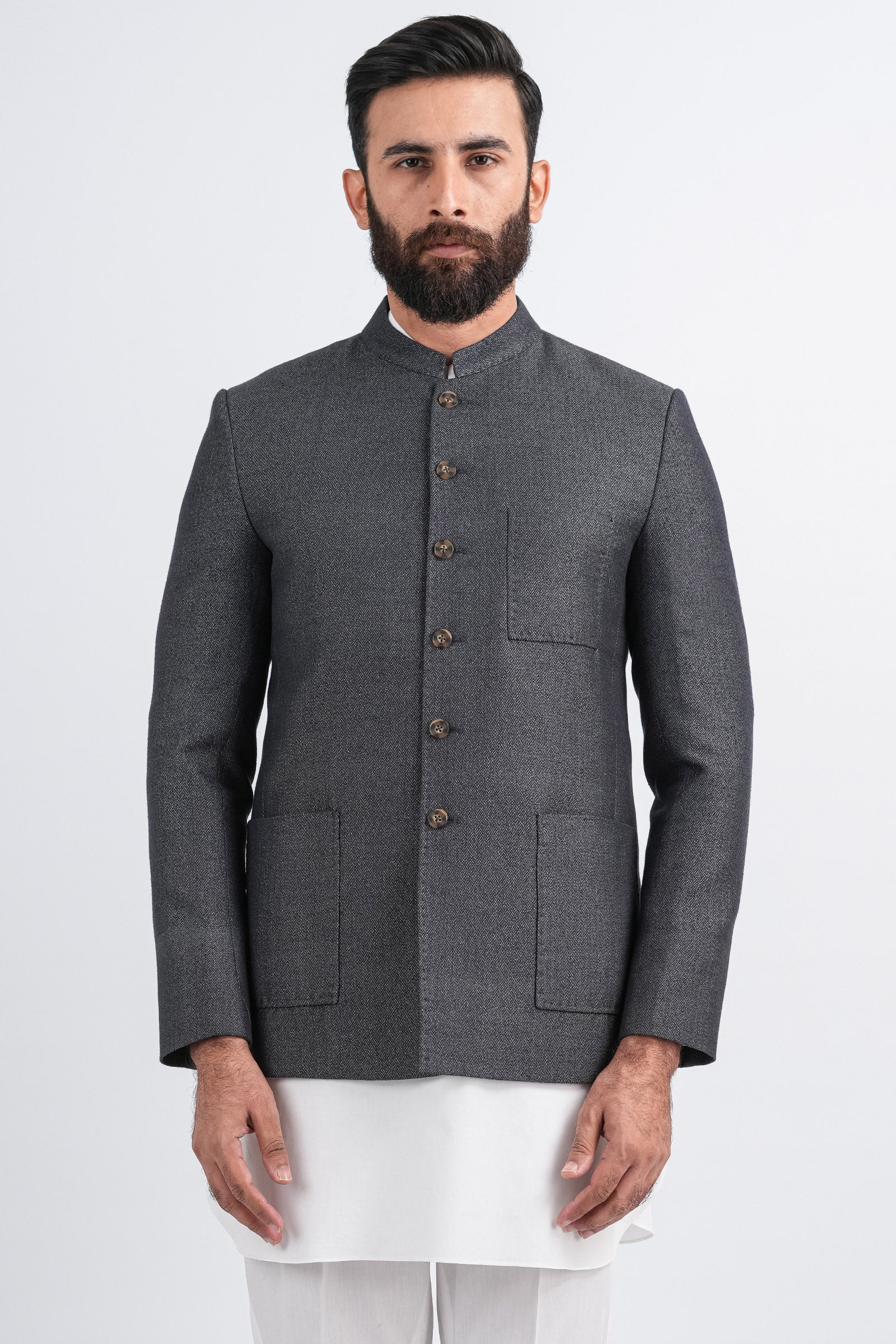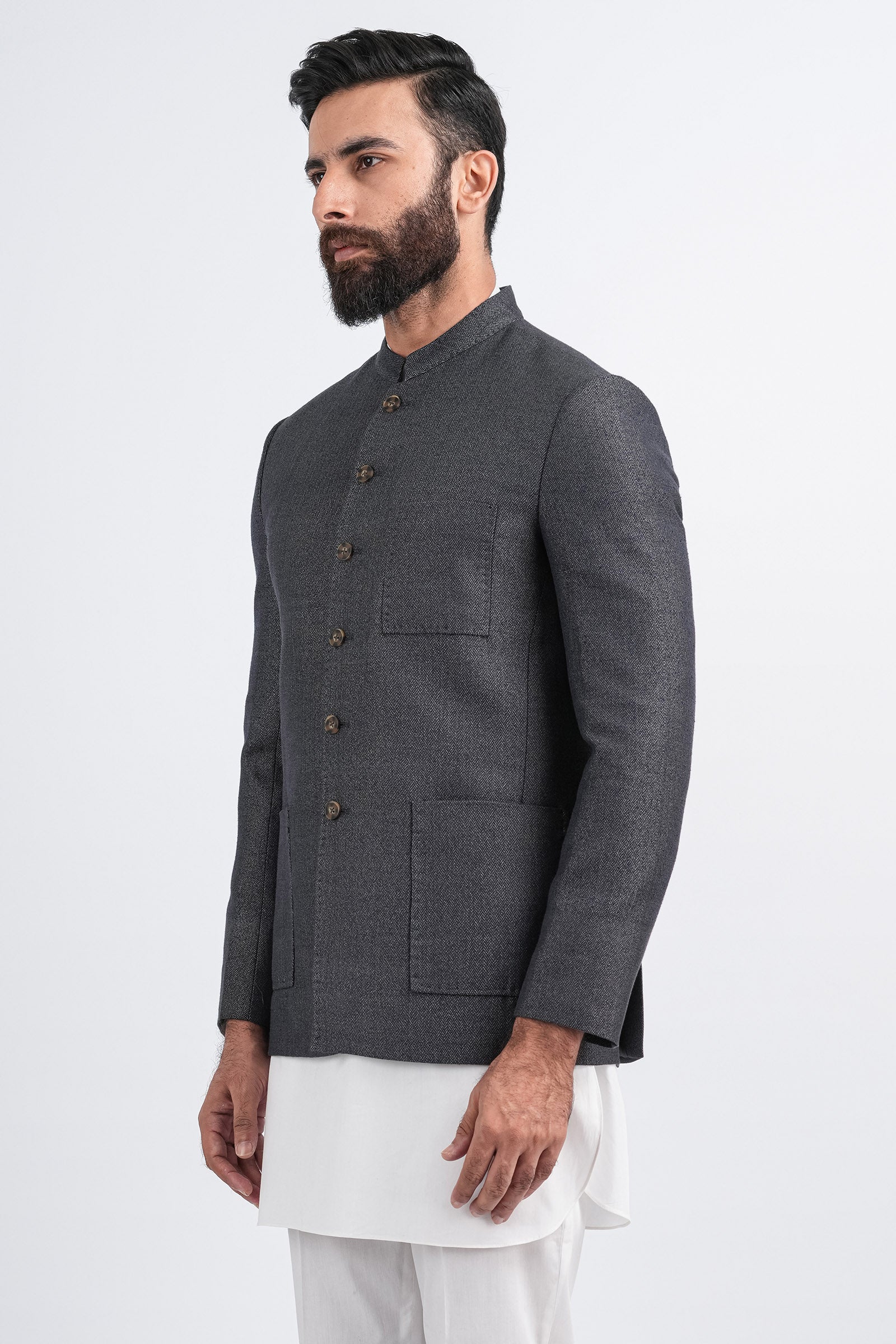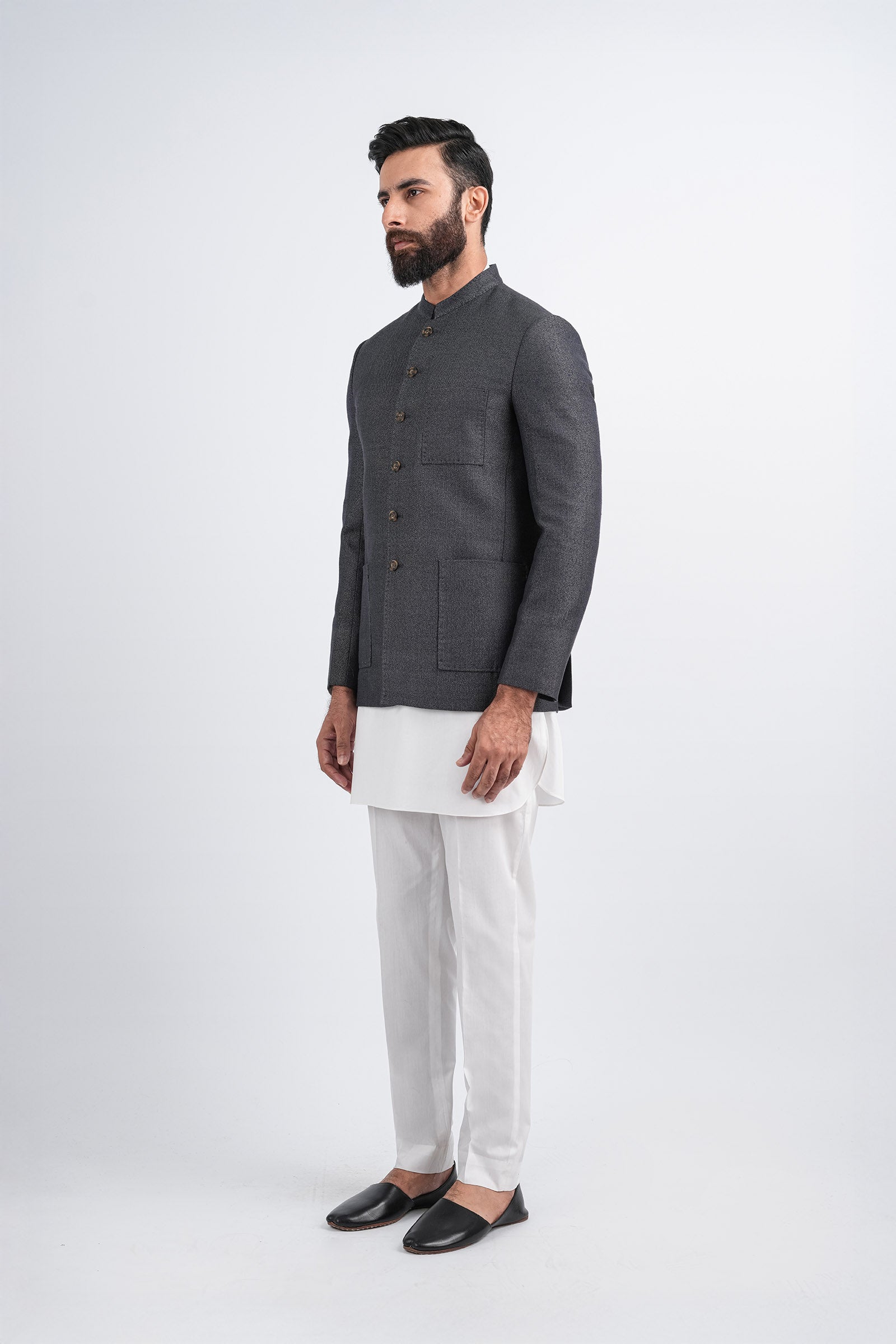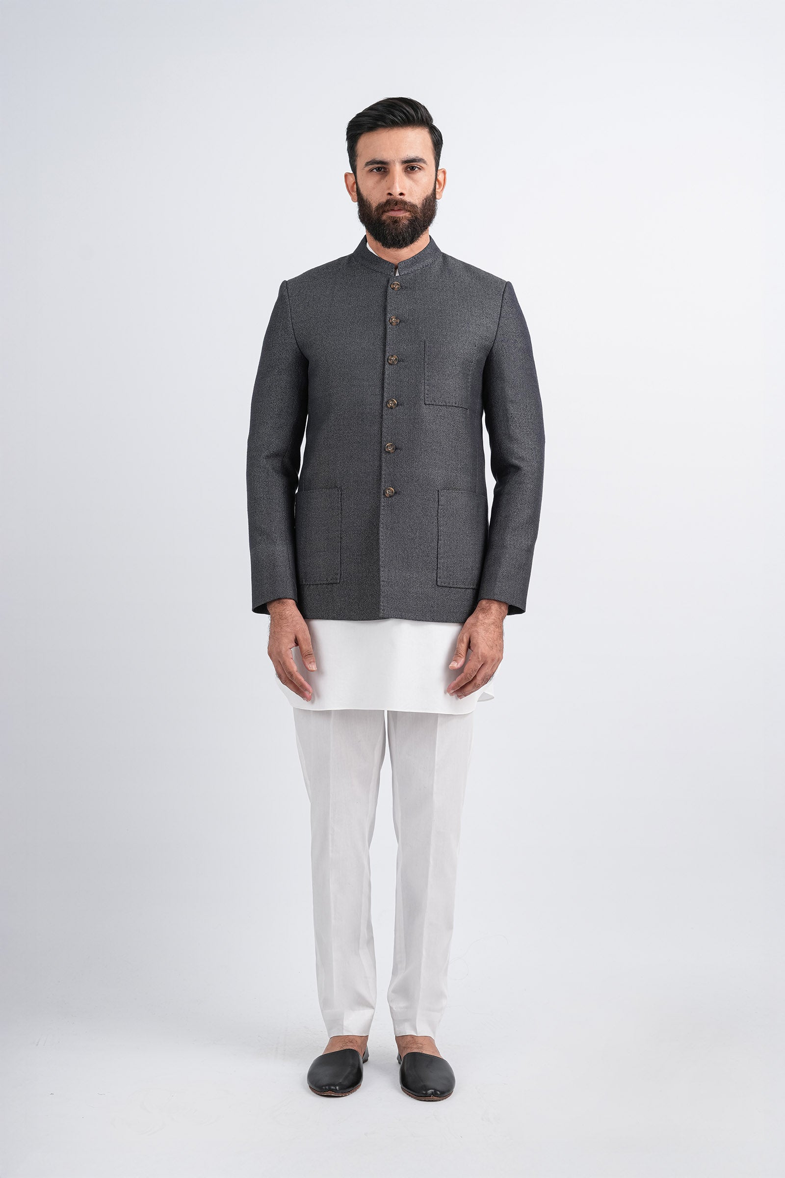 Expertly crafted from handloom cotton, this Quaid coat combines traditional craftsmanship with modern sophistication. Designed for versatility, it features a structured silhouette, tailored patch pockets, a defined button placket, and a band collar, all finished to premium standards. Perfect for both daytime gatherings and evening events, its a statement piece that exudes understated refinement.