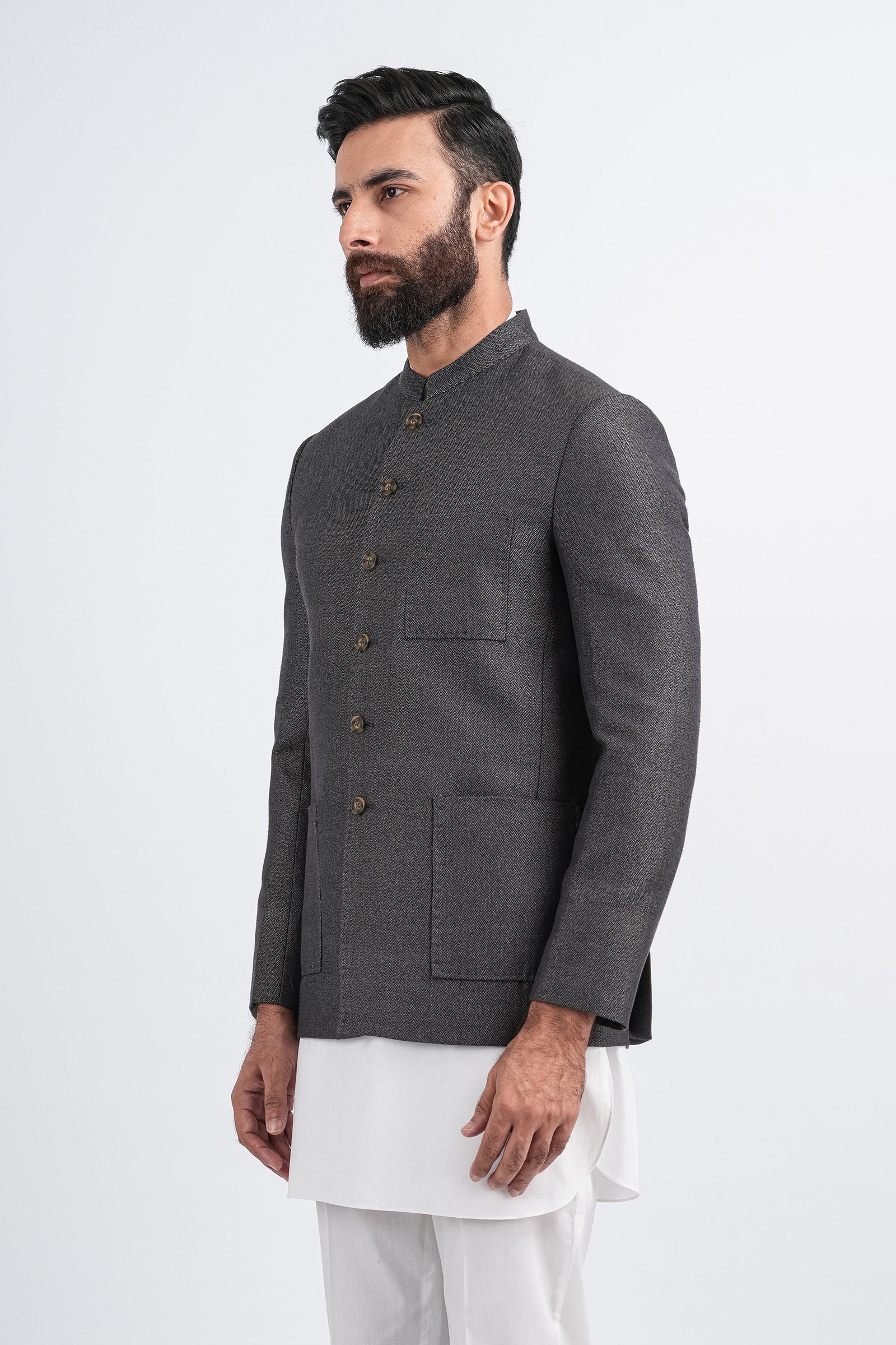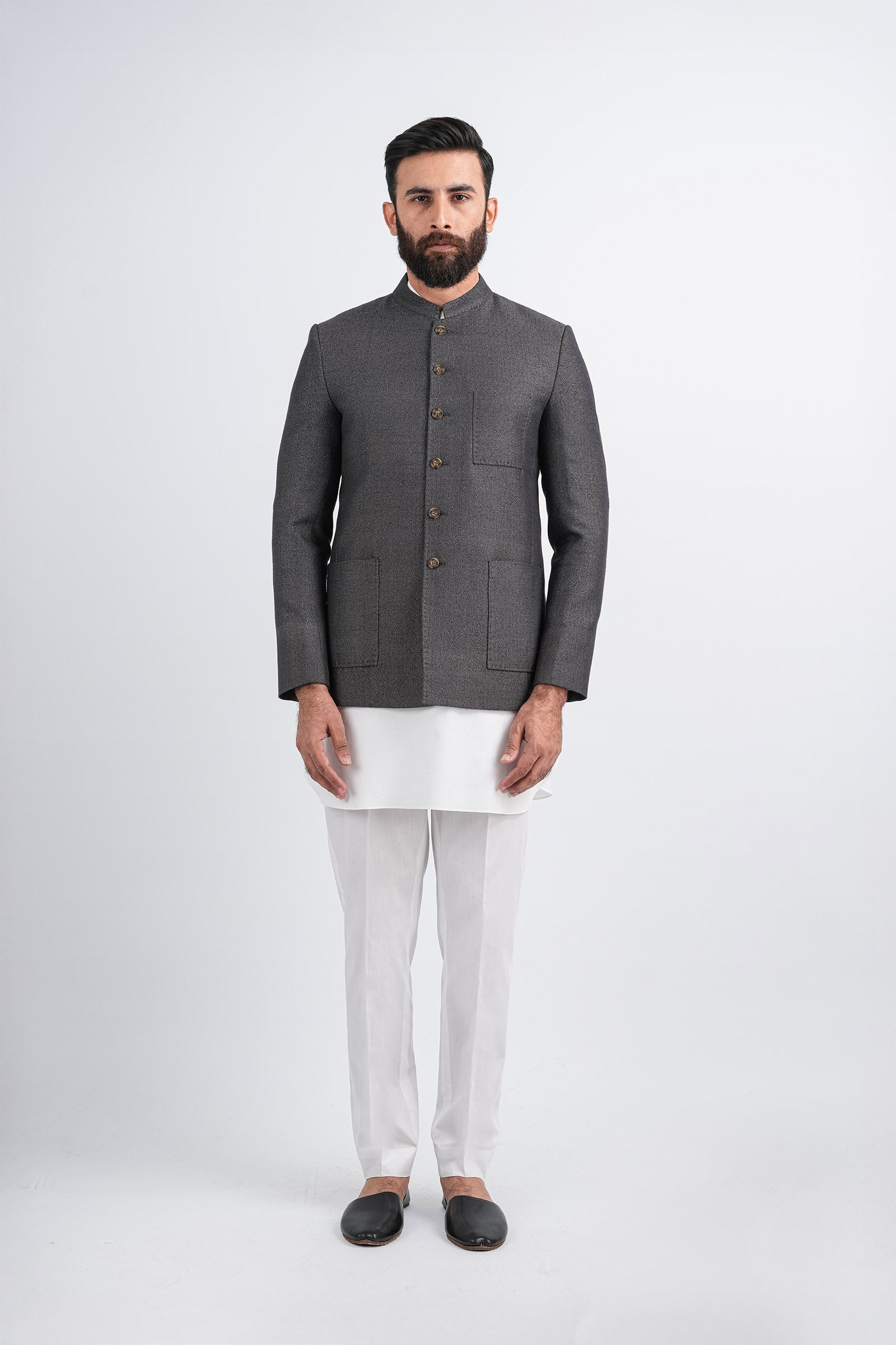 Expertly crafted from handloom cotton, this Quaid coat combines traditional craftsmanship with modern sophistication. Designed for versatility, it features a structured silhouette, tailored patch pockets, a defined button placket, and a band collar, all finished to premium standards. Perfect for both daytime gatherings and evening events, its a statement piece that exudes understated refinement.