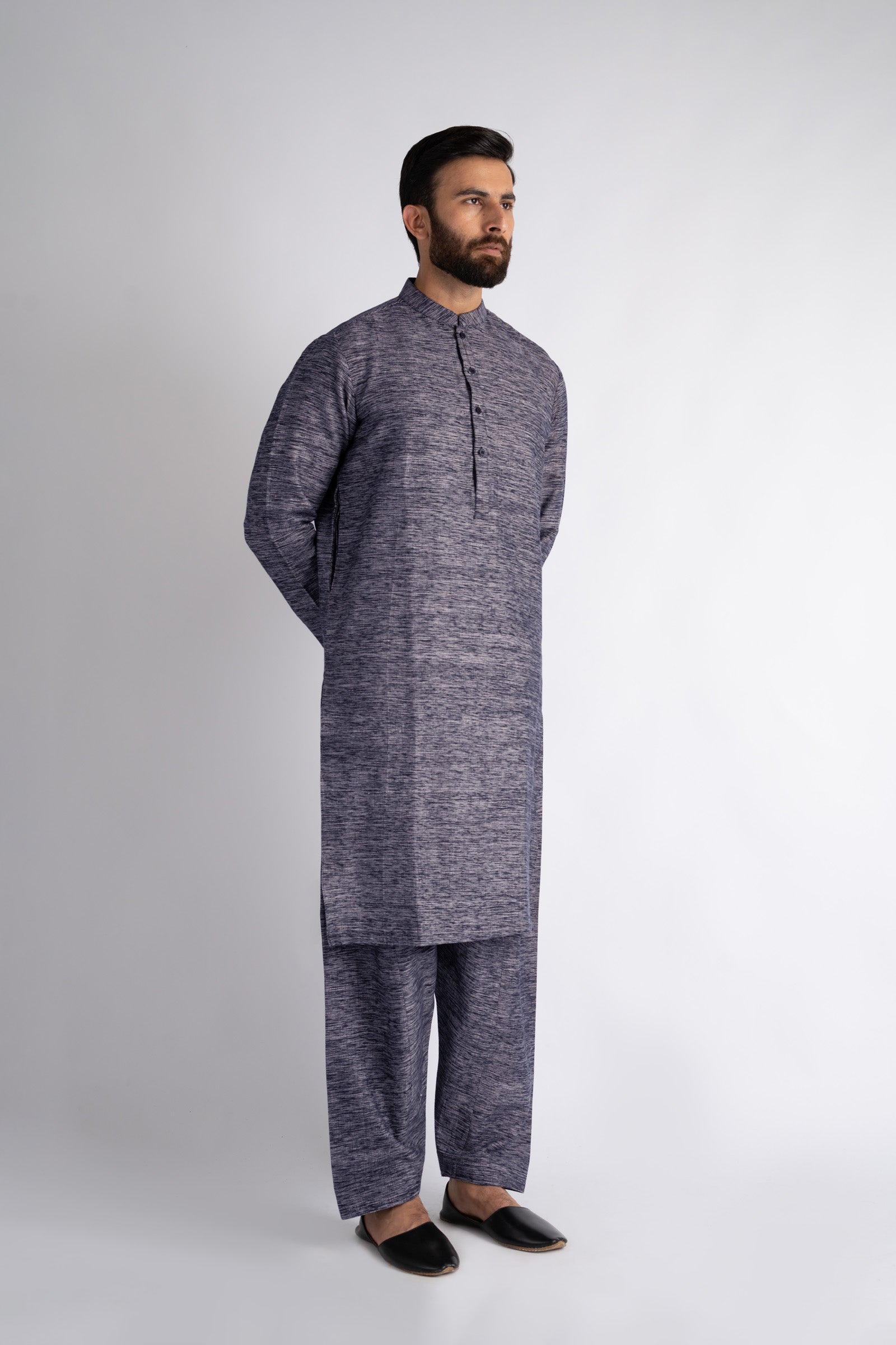 A perfect blend of tradition and modern refinement, this shalwar kameez is crafted from premium handmade Khaddar, offering warmth, texture, and durability. Designed in a classic silhouette with fresh seasonal colours, it serves as a versatile choice for both everyday wear and special occasions. Thoughtful details like the band collar, visible placket, cuffed sleeves, and smart-fit shalwar elevate its timeless appeal.