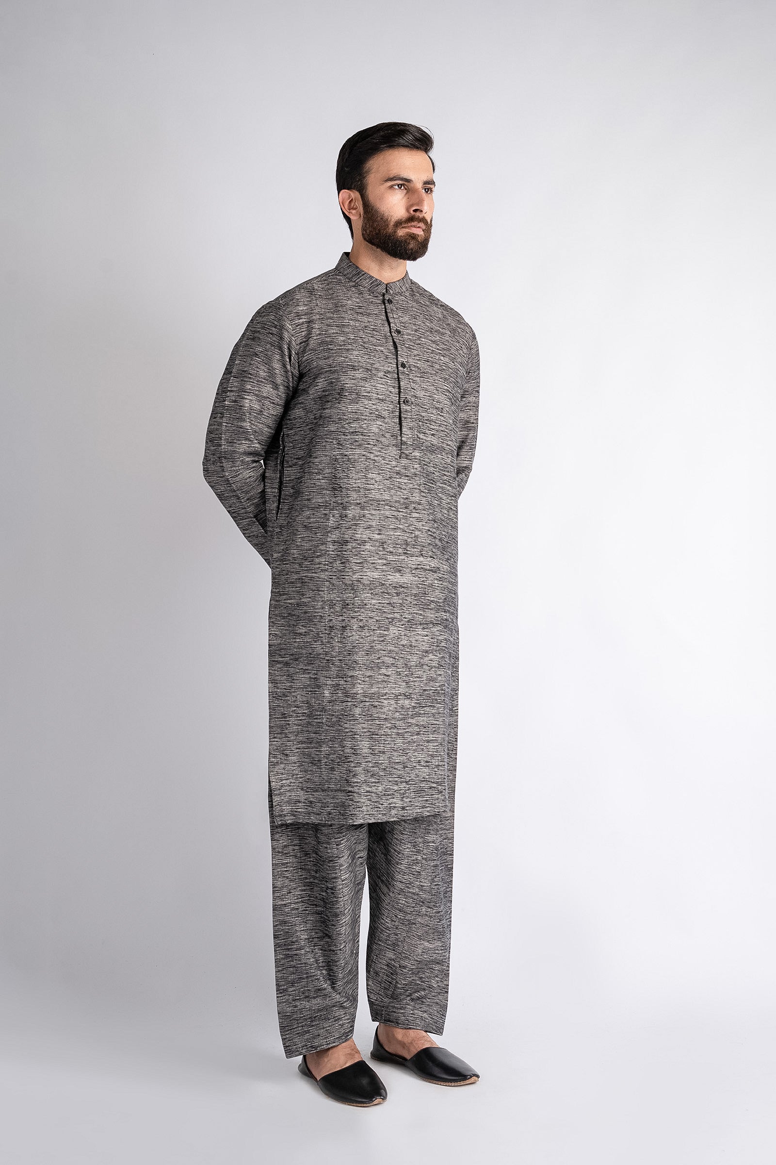Traditional cut, new colours; crafted from the Handmade Khaddar. A multifaceted outfit for both daily-wear and special occasions.