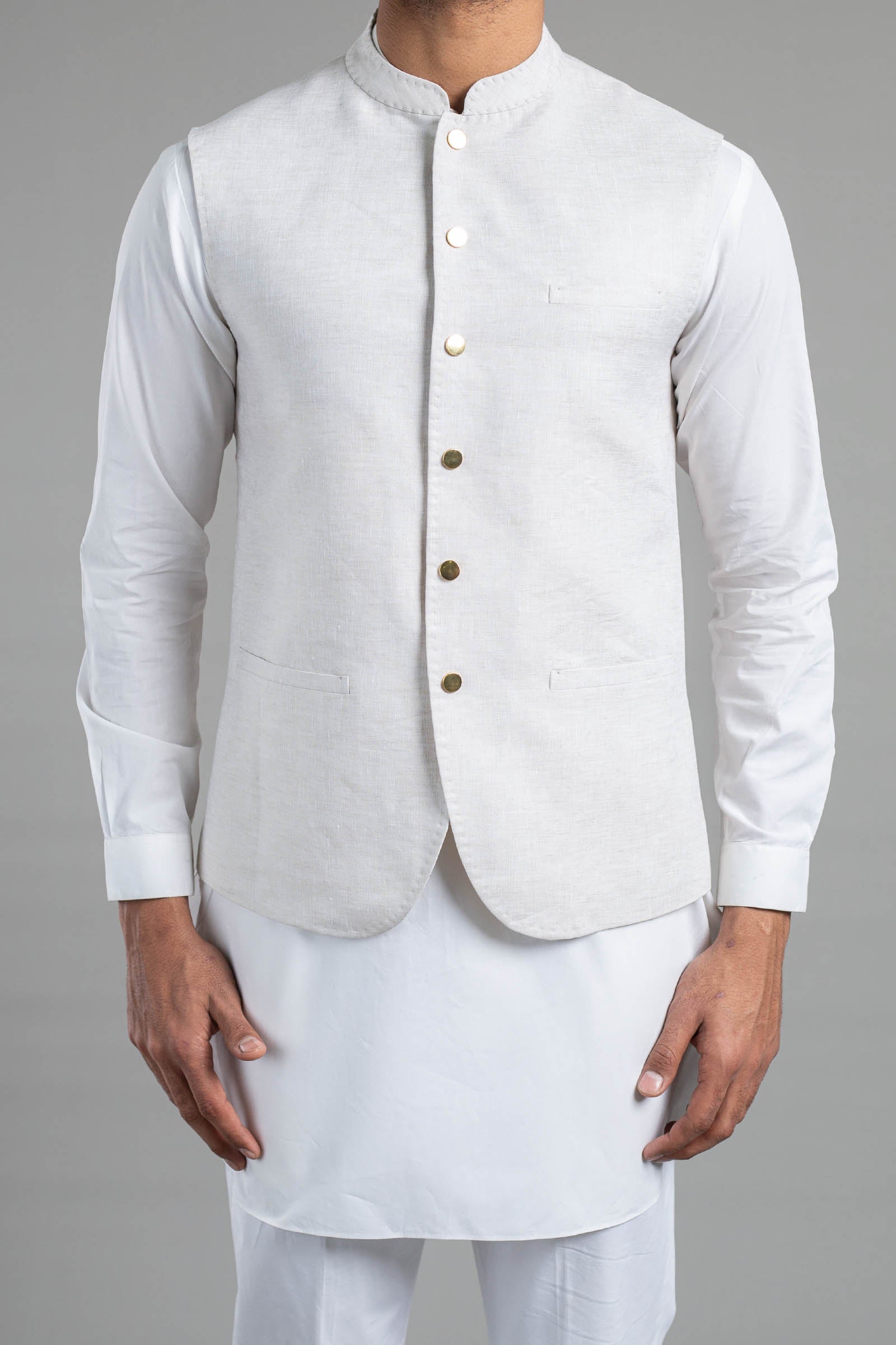 A special piece crafted from Solbiati Linen sourced from Italy arguably the finest Linen the world-over. The Waistcoat is accessorized with gold-plated buttons and is a versatile, perfect for both daytime and night time's special occasions.